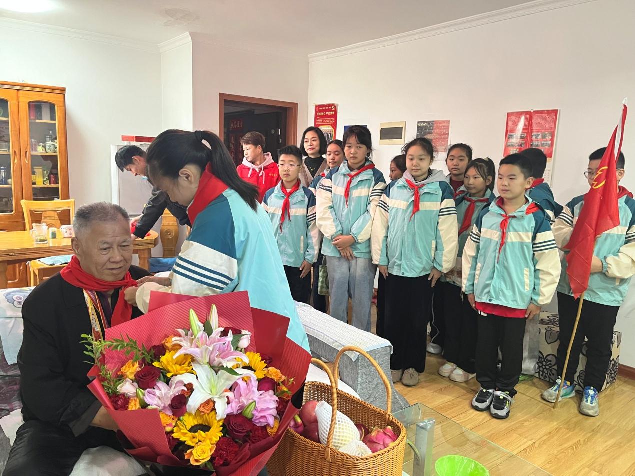 10月25日上午,蚌埠市烈士陵园管理处联合蚌山区退役军人事务局、蚌埠铁路第三小学等走进91岁抗美援朝老兵宴金岭家中,开展“聆听战火岁月,传承红色精神”主题活动。