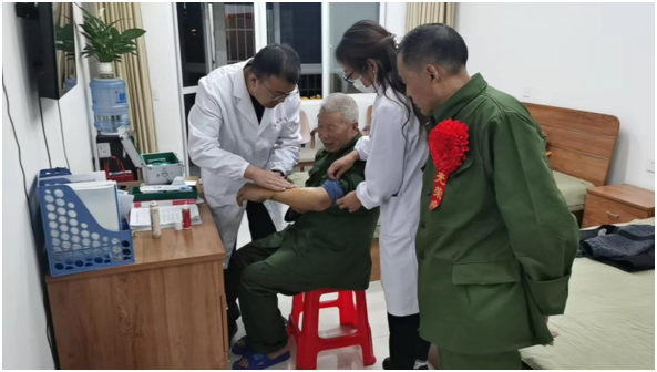 近日,蚌埠市军休一所“白发志愿者”医疗队联合上海市第一人民医院蚌埠医院(蚌埠医科大学第二附属医院)专家医生,为军休干部开展上门巡诊活动。