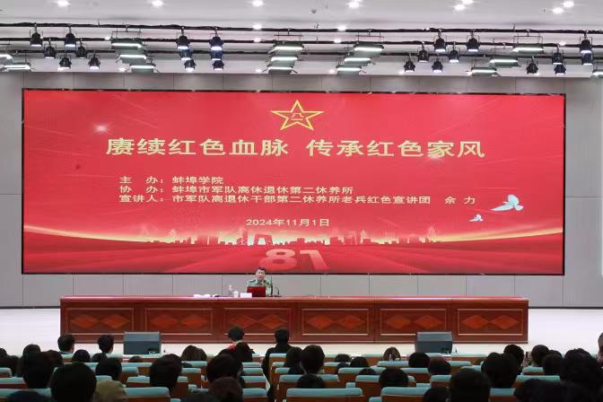 日前,蚌埠市“老兵红色宣讲团”团长余力受邀来到蚌埠学院,为该校第三十九期培训班的500名大学生入党积极分子讲述了一堂生动、特殊的党史课和家风课。