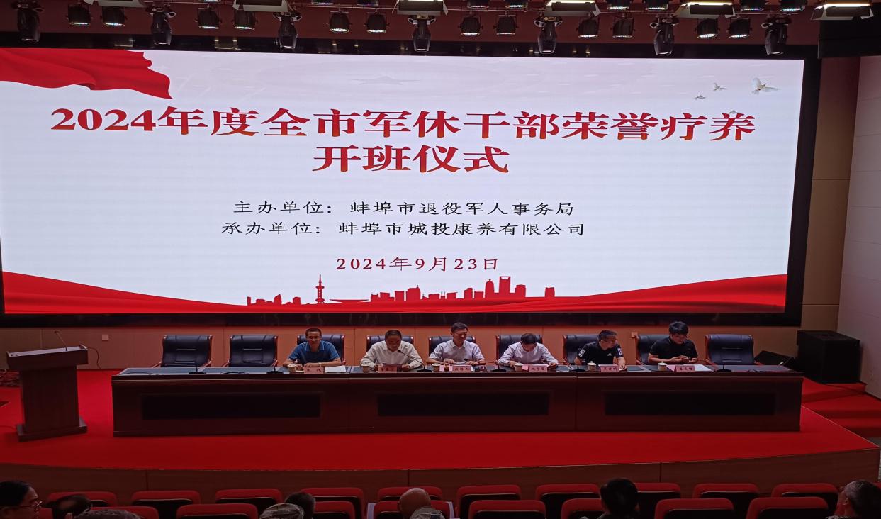 近日,蚌埠市军休干部荣誉疗养开班仪式在蚌埠市城投康养有限公司报告厅举行。市退役军人事务局二级调研员钱培九参加。