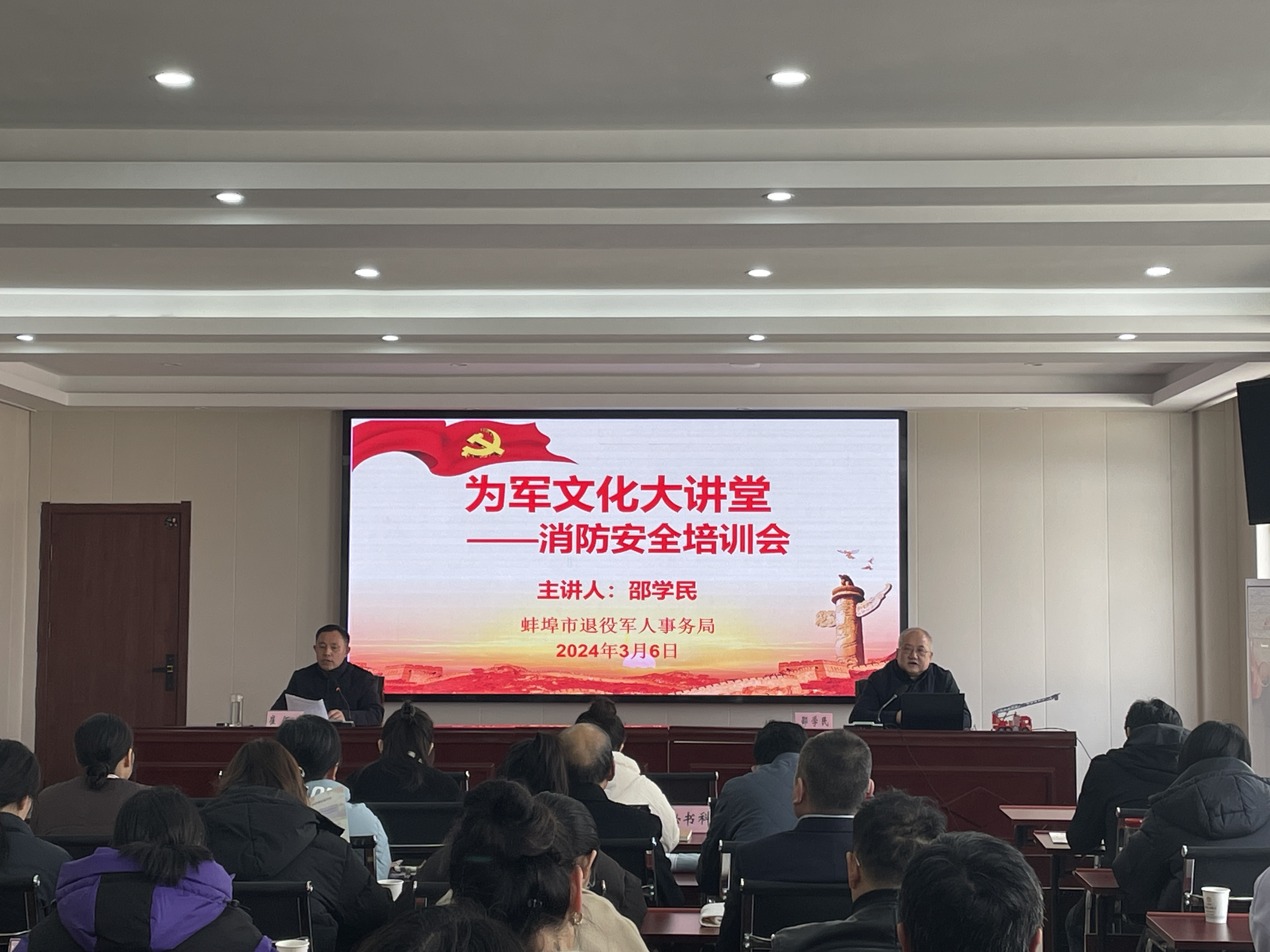 3月6日,蚌埠市退役军人事务局举办2024年度第一期“为军文化大讲堂”暨消防安全培训会,会议由局党组成员、副局长崔佰喜主持,原蚌埠消防支队自主择业军转干部、安全培训教育专家邵学民授 ...