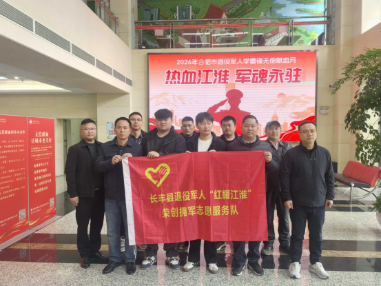 3月5日,长丰县退役军人“红耀江淮”荣创拥军志愿服务队积极响应号召参加“热血江淮∙军魂永驻”2026年合肥市退役军人学雷锋无偿献血月活动,用实际行动彰显新时代退役军人使命担当。