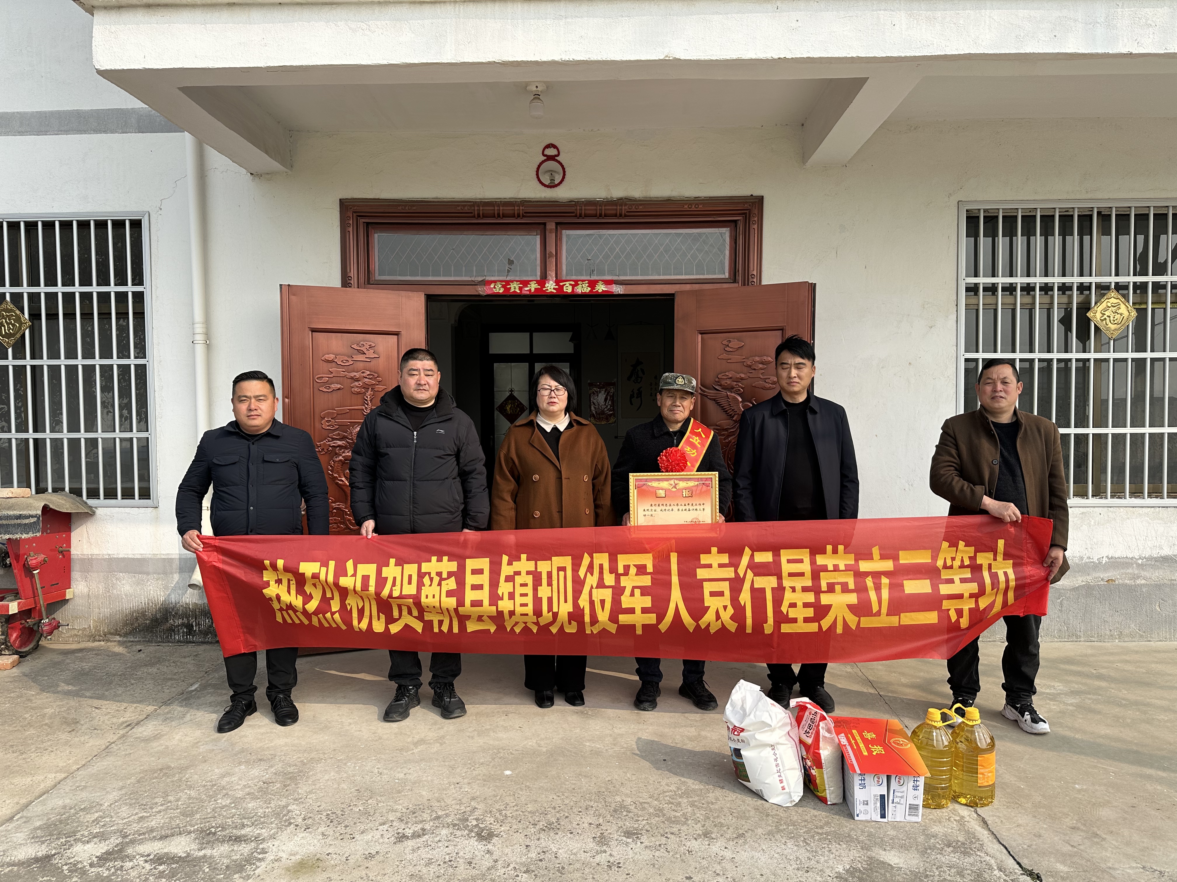 喜报传佳音、荣光耀家门。3月12日上午,宿州市埇桥区蕲县镇武装部、退役军人服务站联合村干部组成送喜报小分队,为荣立三等功的现役军人袁行星家中送去喜报与慰问。
