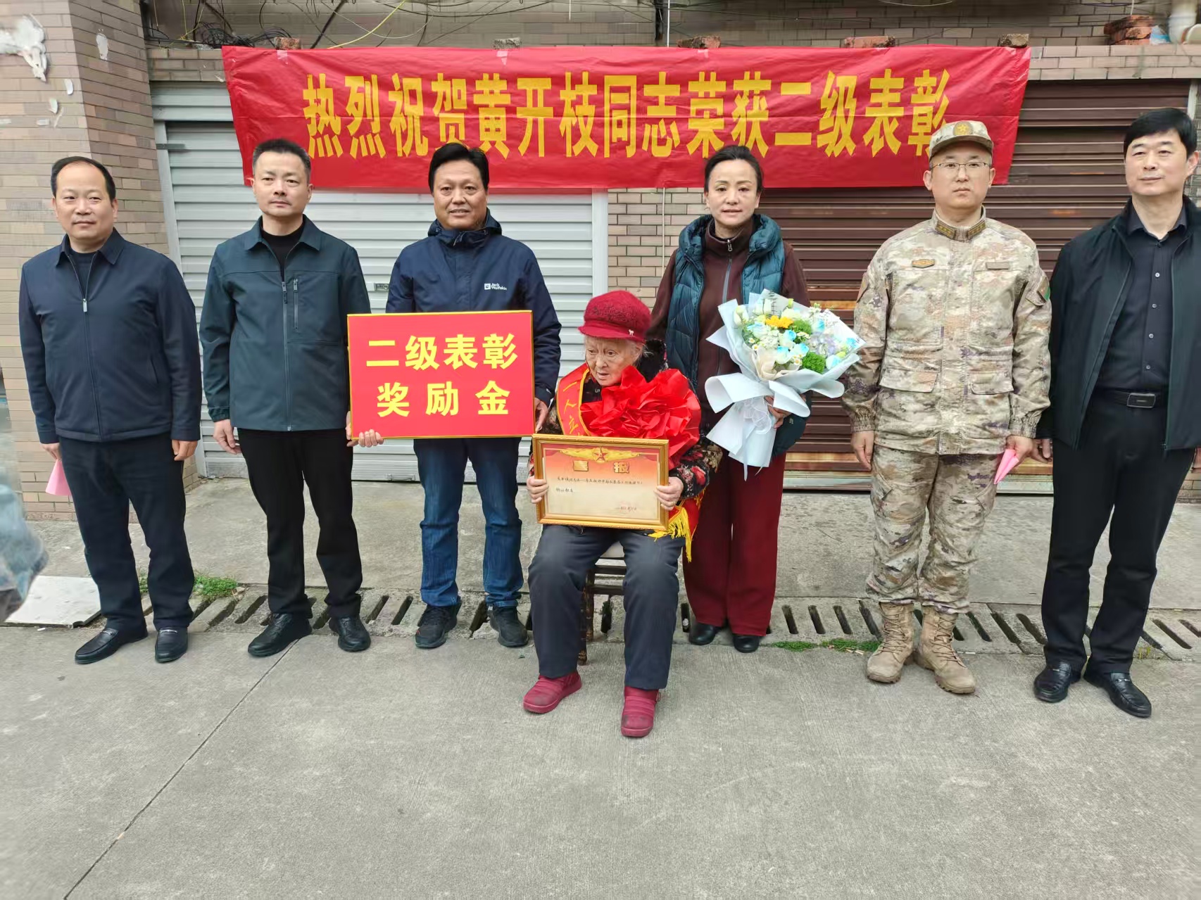 3月27日上午,来安县举行送喜报仪式,为荣获二级表彰的现役军人黄开枝家属送上喜报与奖励金。