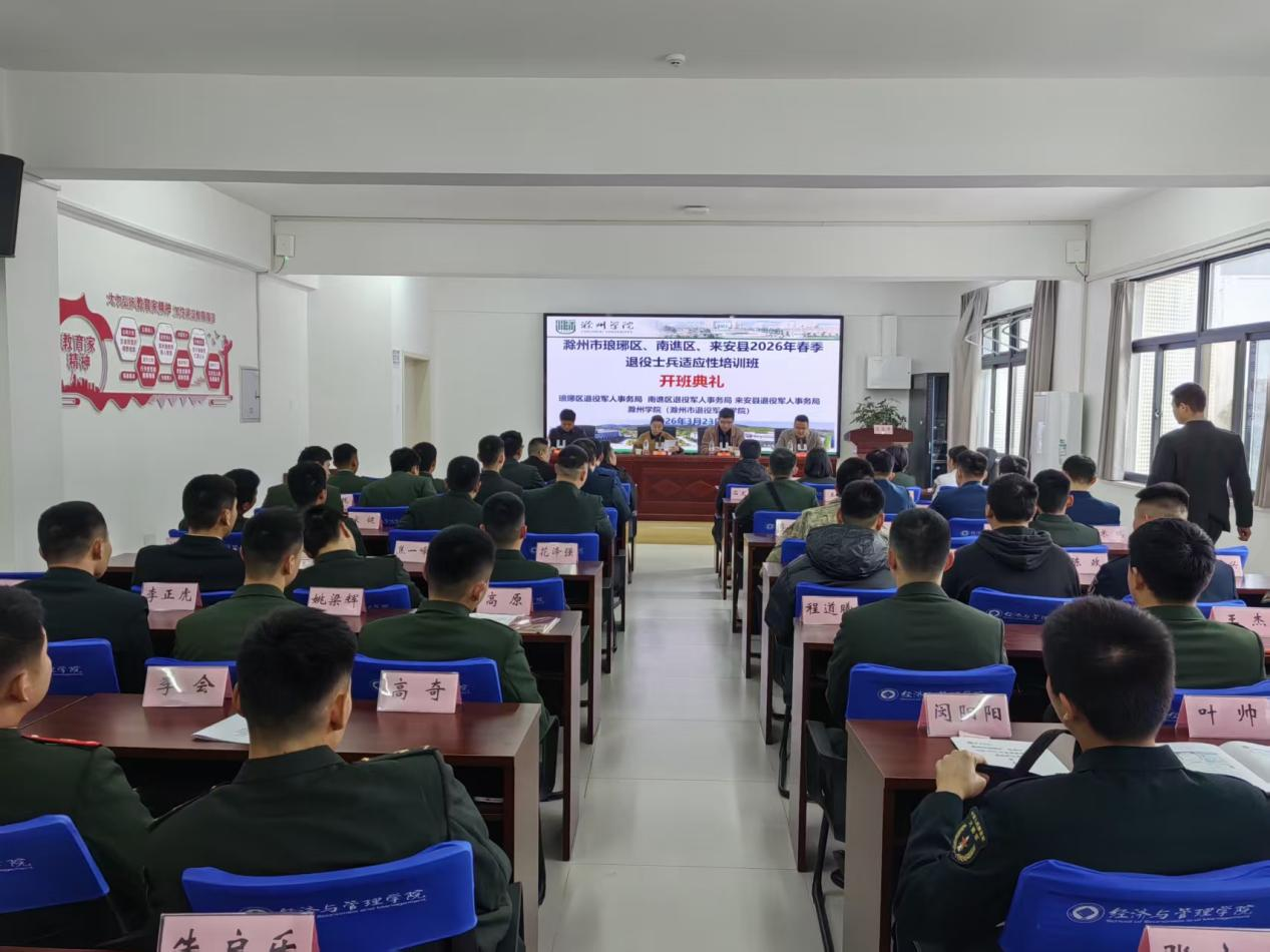 近日,滁州市琅琊区退役军人事务局与滁州学院联合举行2026年春季退役士兵全员适应性培训开班仪式。本次培训创新采用“线下+线上”相结合的模式,有效打破时空限制,极大提升了参训学员的参...