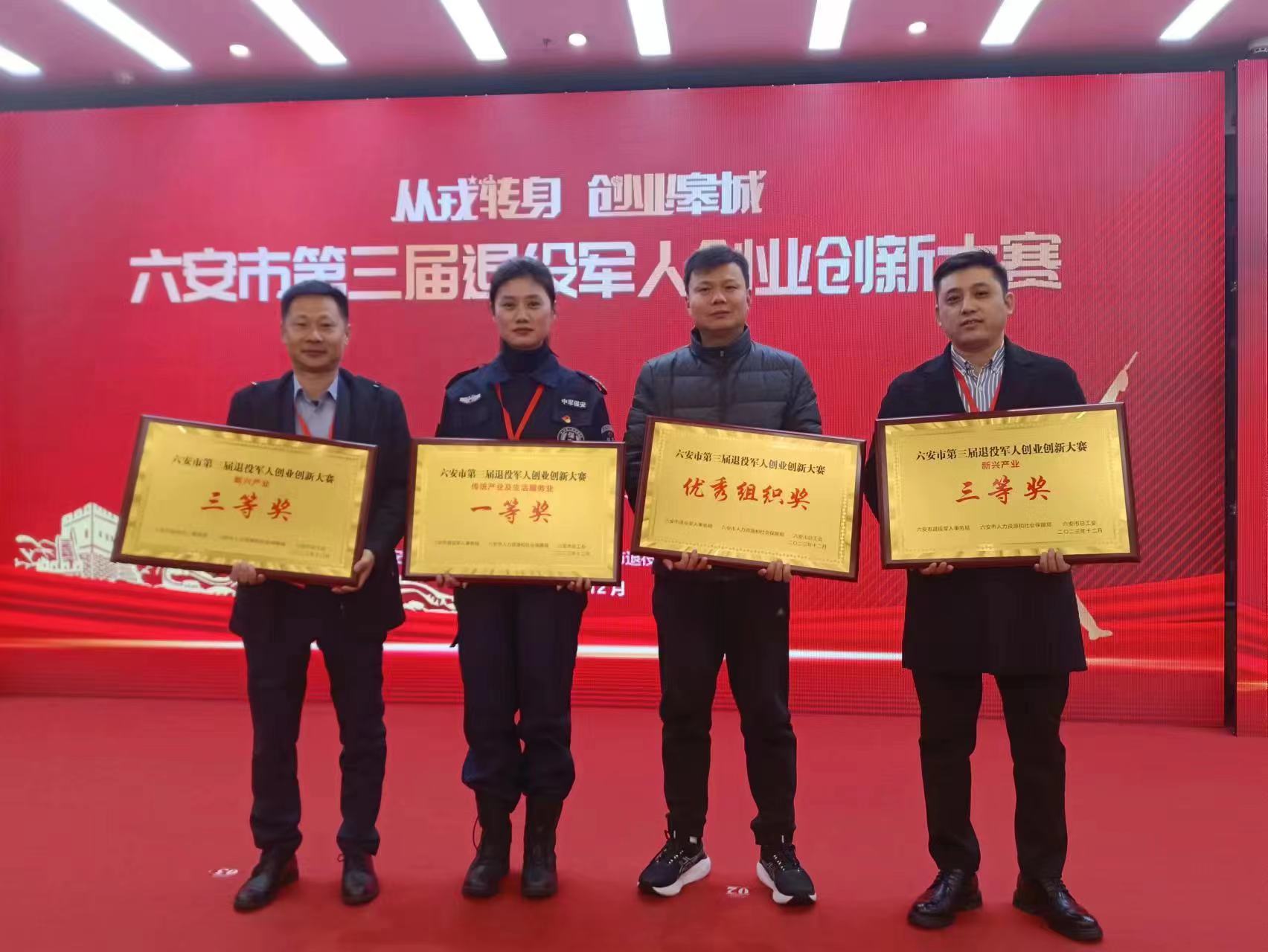 从戎转身,创业皋城,12月15日,六安市第三届退役军人创业创新大赛圆满落幕。金安区中军保安公司获一等奖,云灵猴科教公司、君之旅公司获三等奖,金安区代表队获得优秀组织奖。