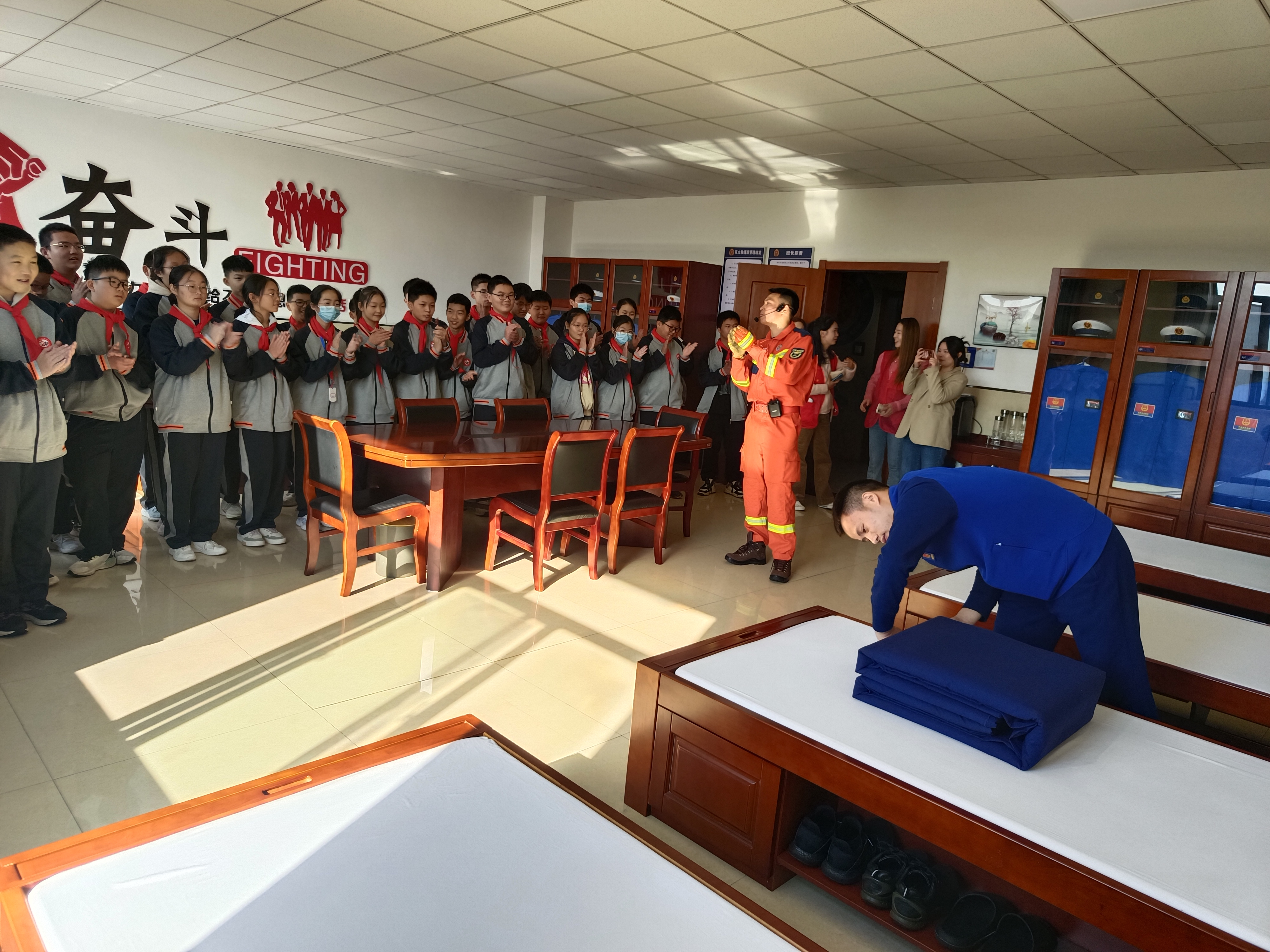 11月8日,六安市金安区退役军人局联合金开区应急局组织六安市智恒中学少先队员走进金安区消防救援大队开展消防安全主题教育实践活动。