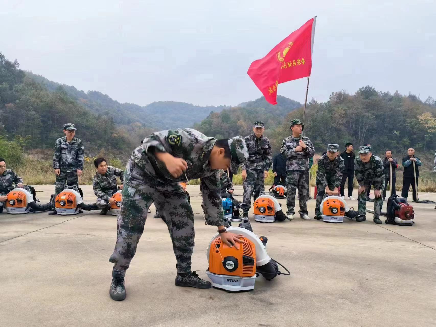 11月16日上午,六安市金安区退役军人“红耀江淮”志愿服务队在张店镇太平桥村开展森林防火实战化演练。