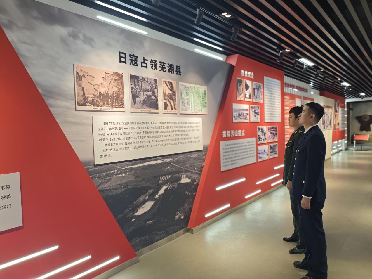 近日,芜湖市湾沚区退役军人事务局以“老兵港湾戎光润沚”党建品牌为引领,组织部分返乡退役军人、预备役人员走进湾沚区红色印记馆,开展红色教育主题活动。