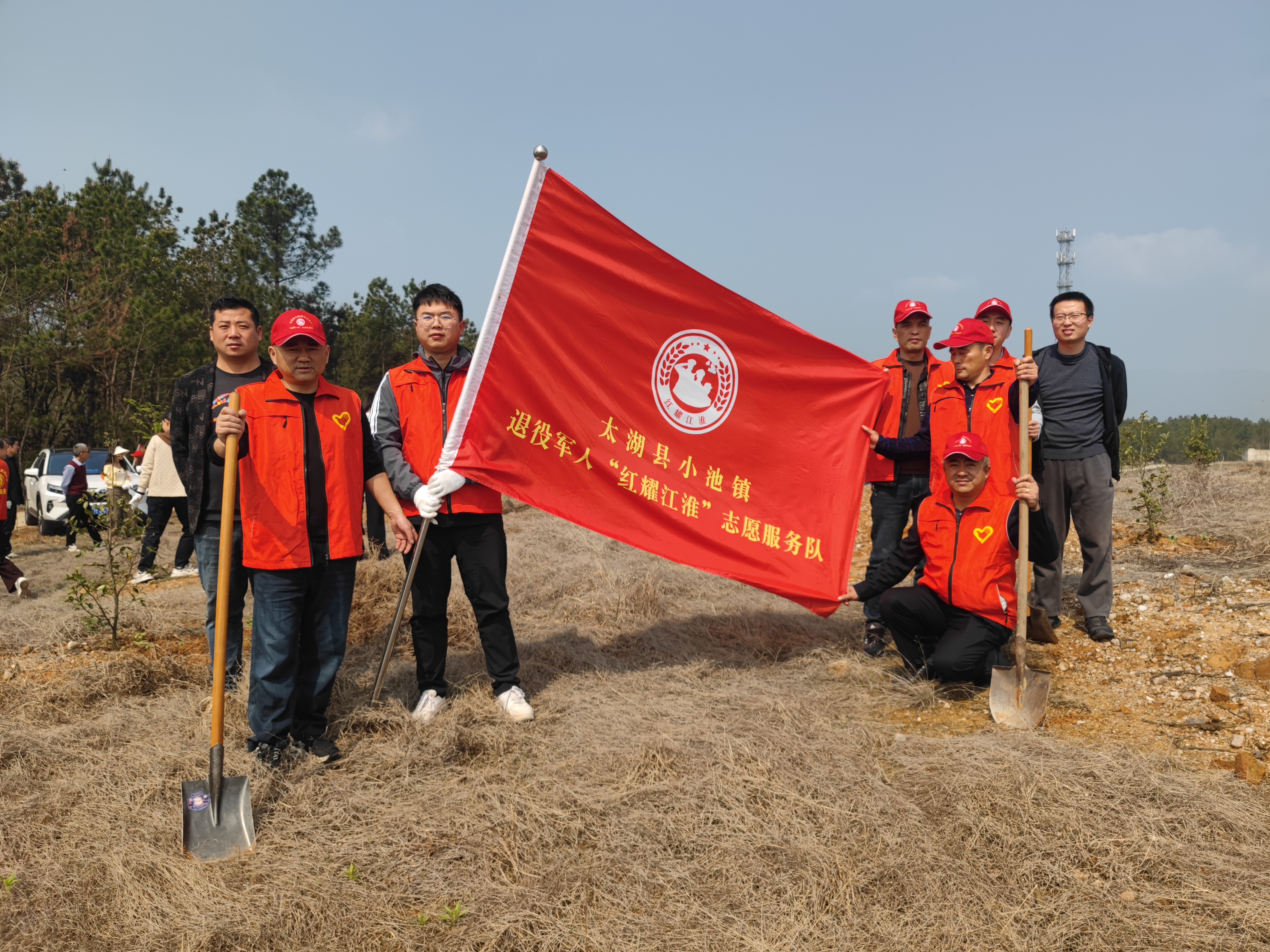 近日,太湖县小池镇组织开展春季义务植树活动,一支由退役军人组成的志愿服务队主动请缨、踊跃参与,以实际行动诠释“退役不褪色”的军人本色,为乡镇生态增添新绿。