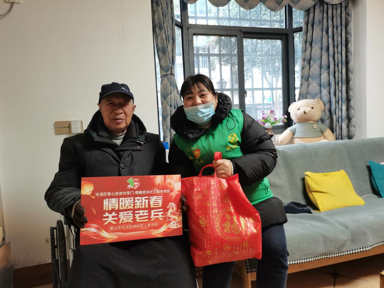 春节临近,黄山市屯溪区退役军人事务局“爱心送进光荣门——情暖老兵”社工服务项目启动,向老兵们送去诚挚的关怀与节日祝福。