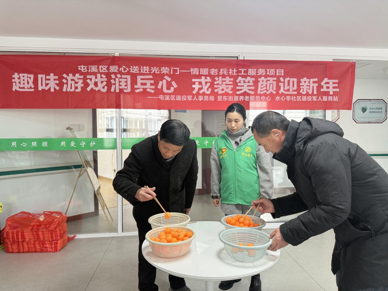 近日,黄山市屯溪区退役军人事务局依托“爱心送进光荣门——情暖老兵”社工服务项目,联合昱东街道水心亭社区,精心开展“趣味游戏润兵心戎装笑颜迎新年”新春主题活动。辖区30余名退役军 ...
