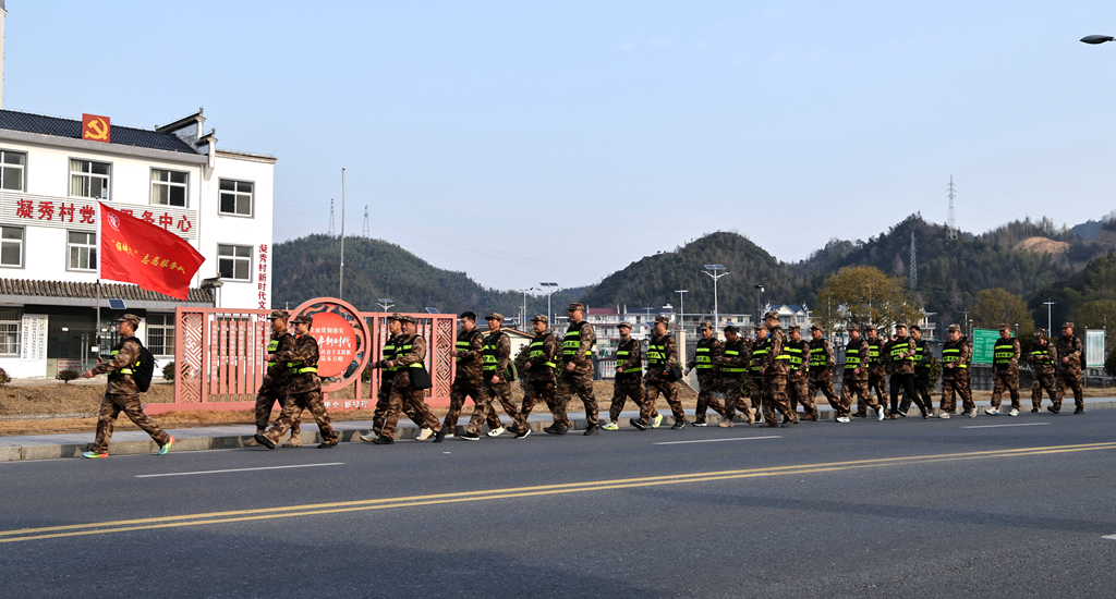祁门县:戎耀梅城“以练备战”,志愿服务队野外拉练展风采