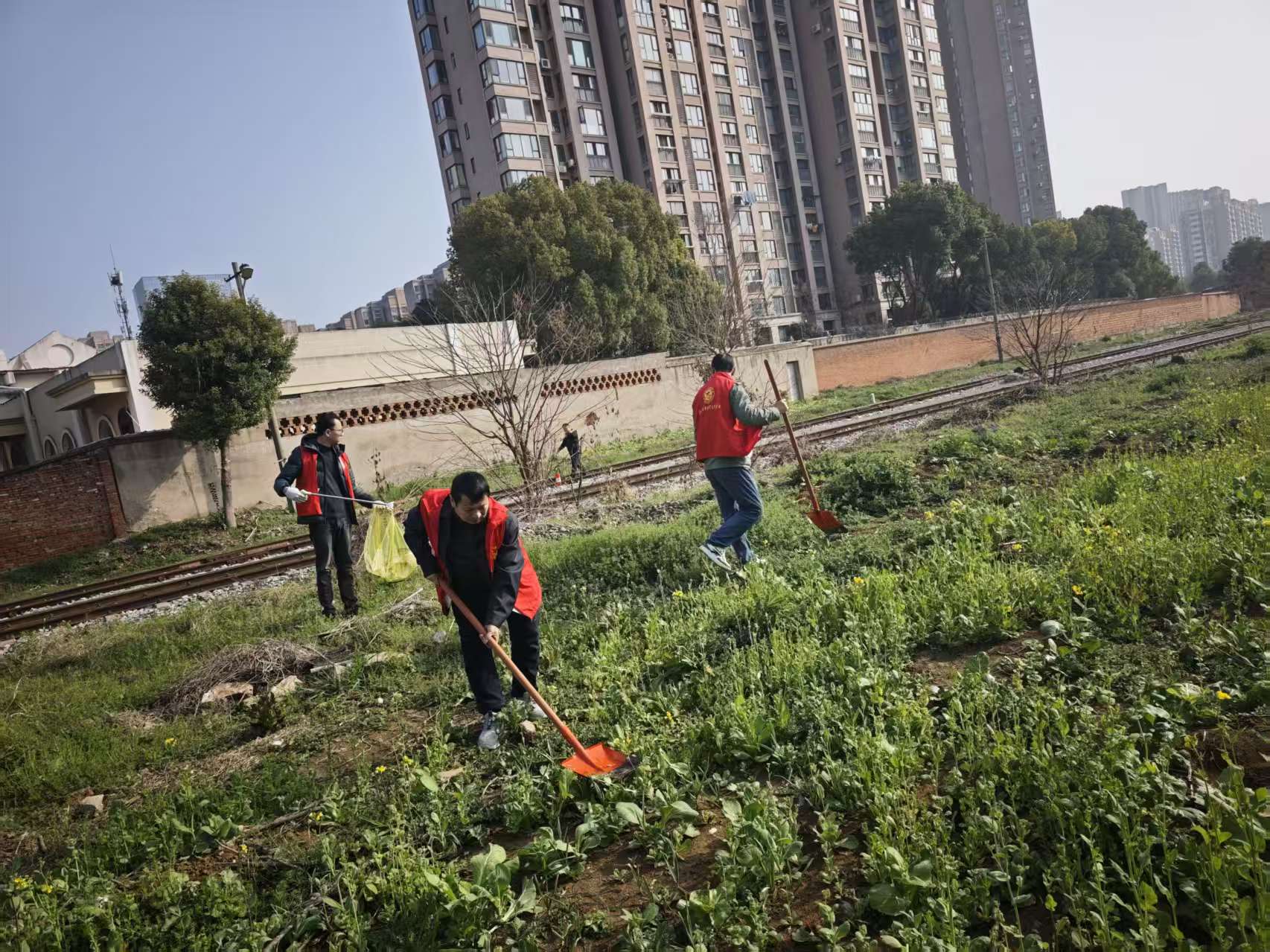铁路沿线风景是城市的一张名片,为深入推进城市精细化治理工作,美化铁路沿线周边环境,3月6日上午,合肥市蜀山区荷叶地街道嘉和苑社区组织志愿者参加十八公里铁路线环境专项整治行动。