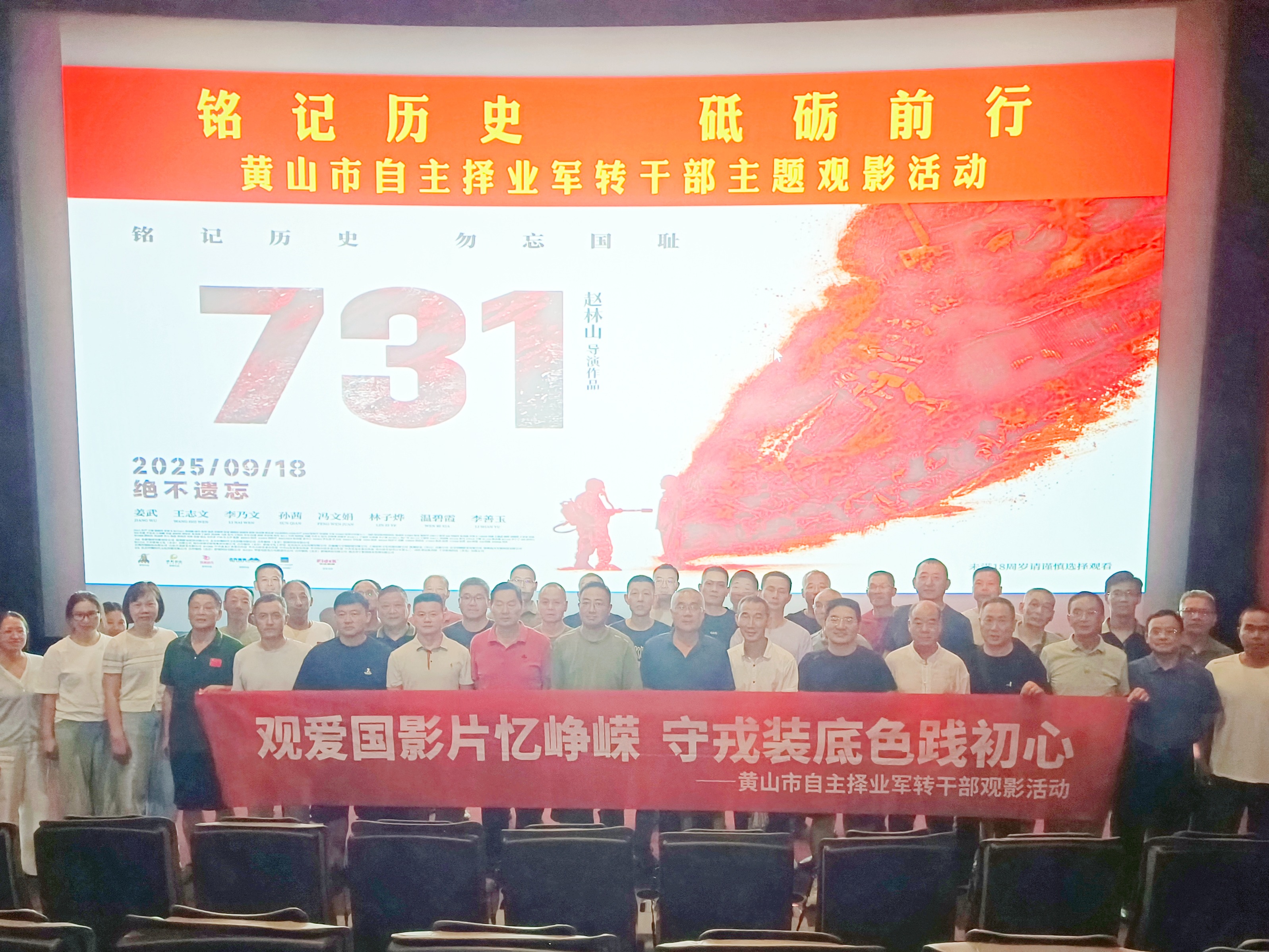 近日,黄山市退役军人事务局组织全市自主择业军转干部开展“铭记历史砥砺前行”主题观影活动,集体观看抗战题材电影《731》。