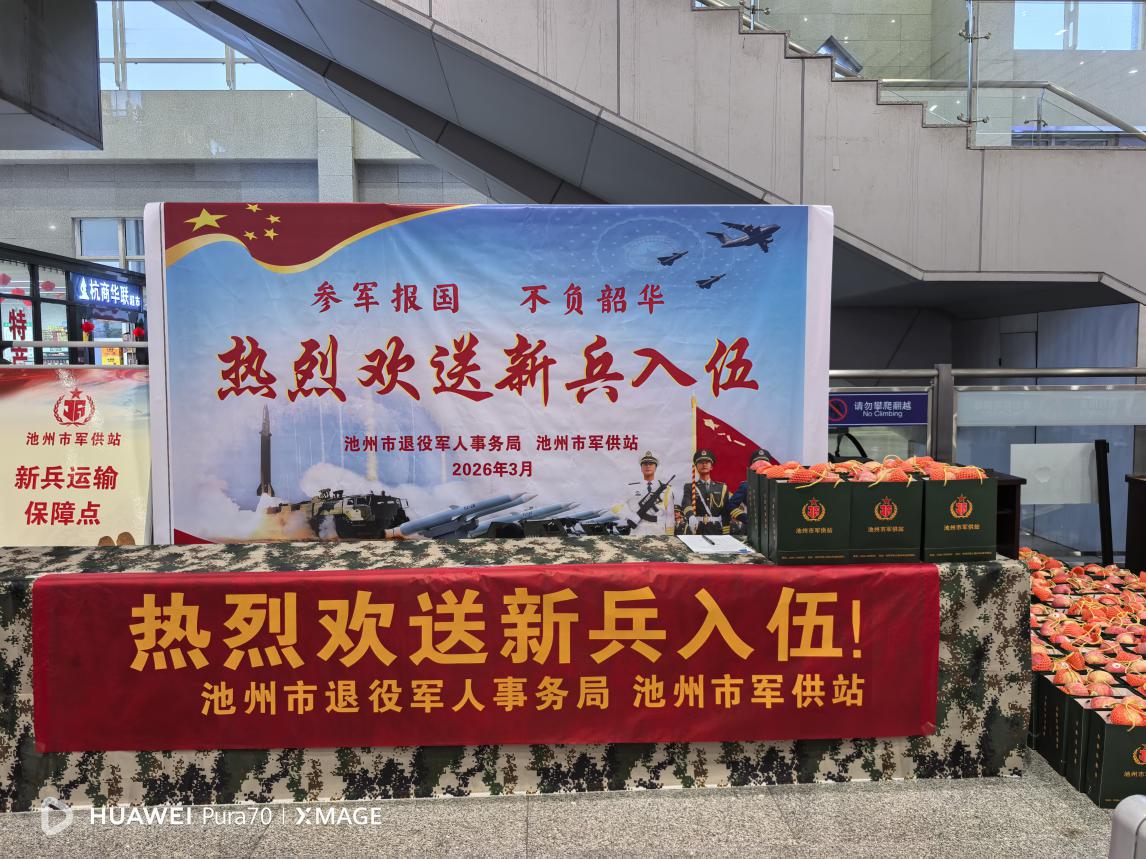 3月17日,池州市退役军人事务局精心组织新兵运输保障工作,精准指导市军供站紧扣“倾心服务、助力启程”宗旨,周密筹划、细致落实,以高标准保障服务为池州籍新兵奔赴军营保驾护航。