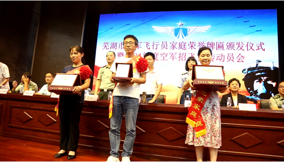 芜湖市颁发首次评定飞行等级空军飞行员家庭荣誉牌匾