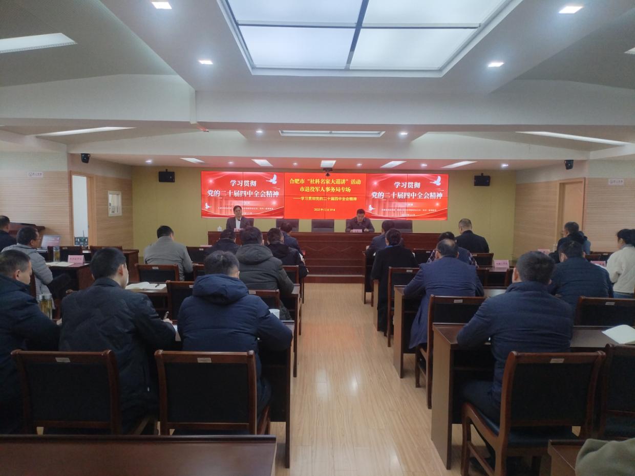12月19日,合肥市“社科名家大巡讲”活动走进合肥市退役军人事务局,开展党的二十届四中全会精神专题宣讲,市政协常委、港澳台侨和外事委员会主任、一级调研员王智源受邀作辅导报告。局机 ...