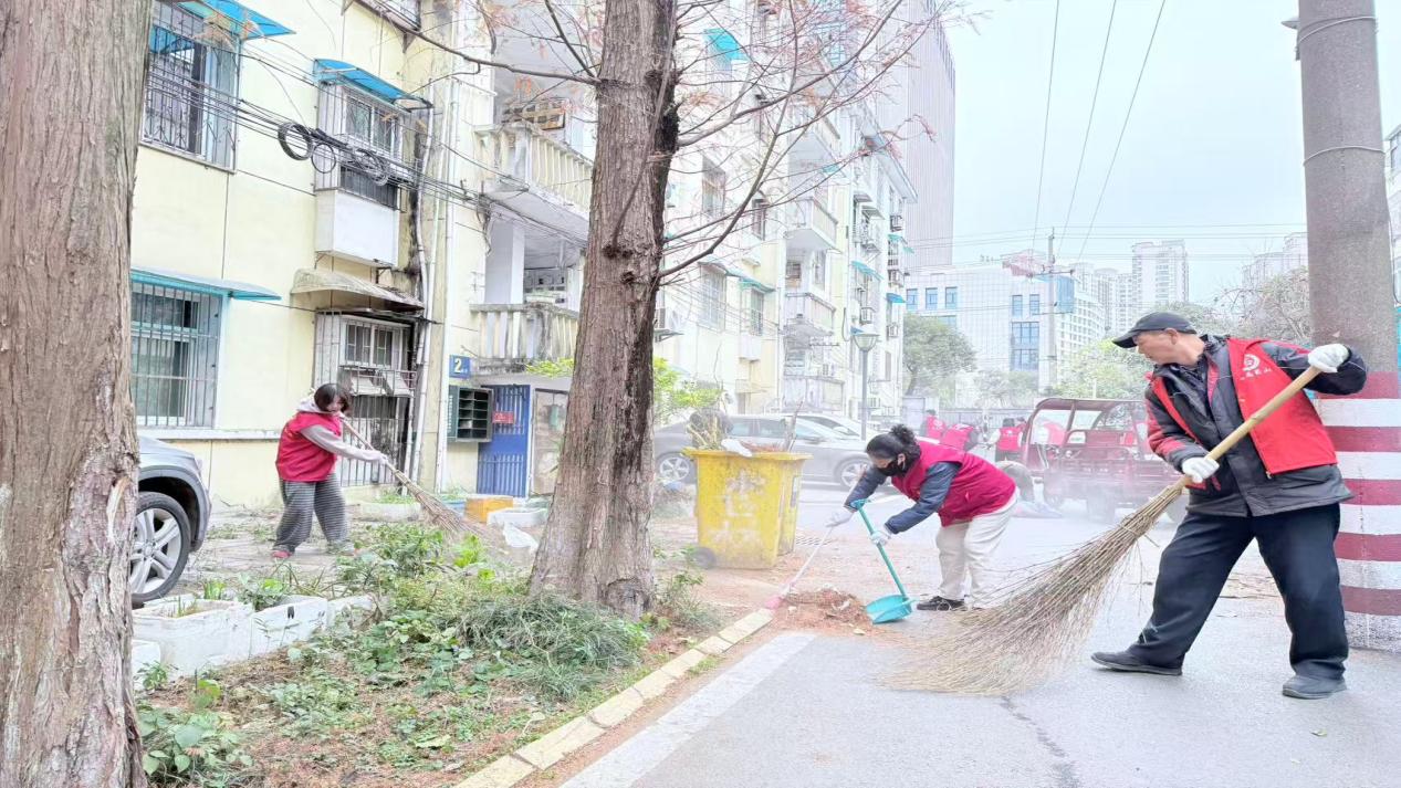 蜀山区三里庵街道杏林社区退役军人志愿者开展环境整治