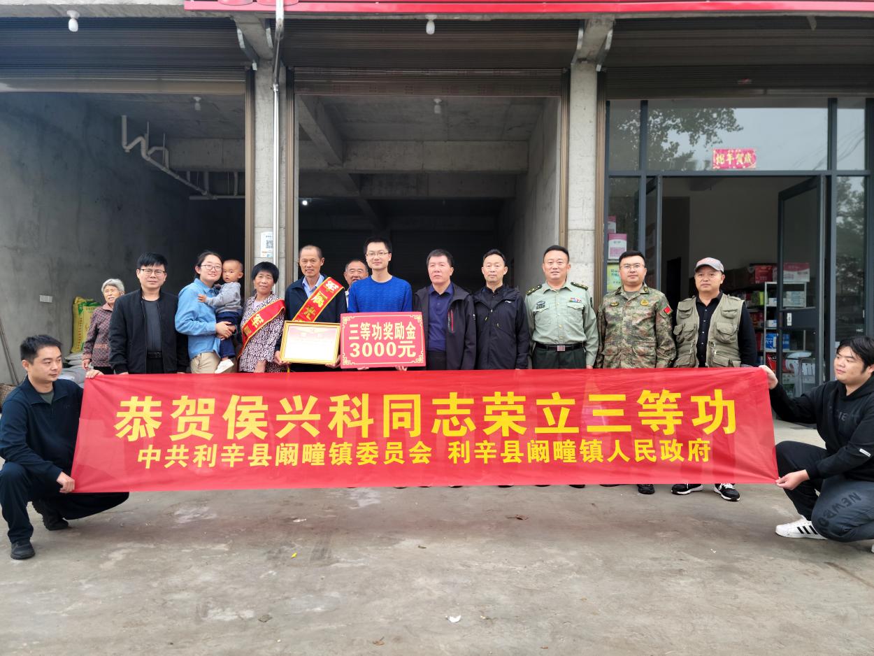近日,利辛县阚疃镇联合县人武部、县退役军人事务局开展“送喜报进家门”活动,为荣立三等功的侯兴科同志家属送去荣誉与关怀。县人武部副部长邵旭波、县退役军人事务局局长吴治东、阚疃镇 ...