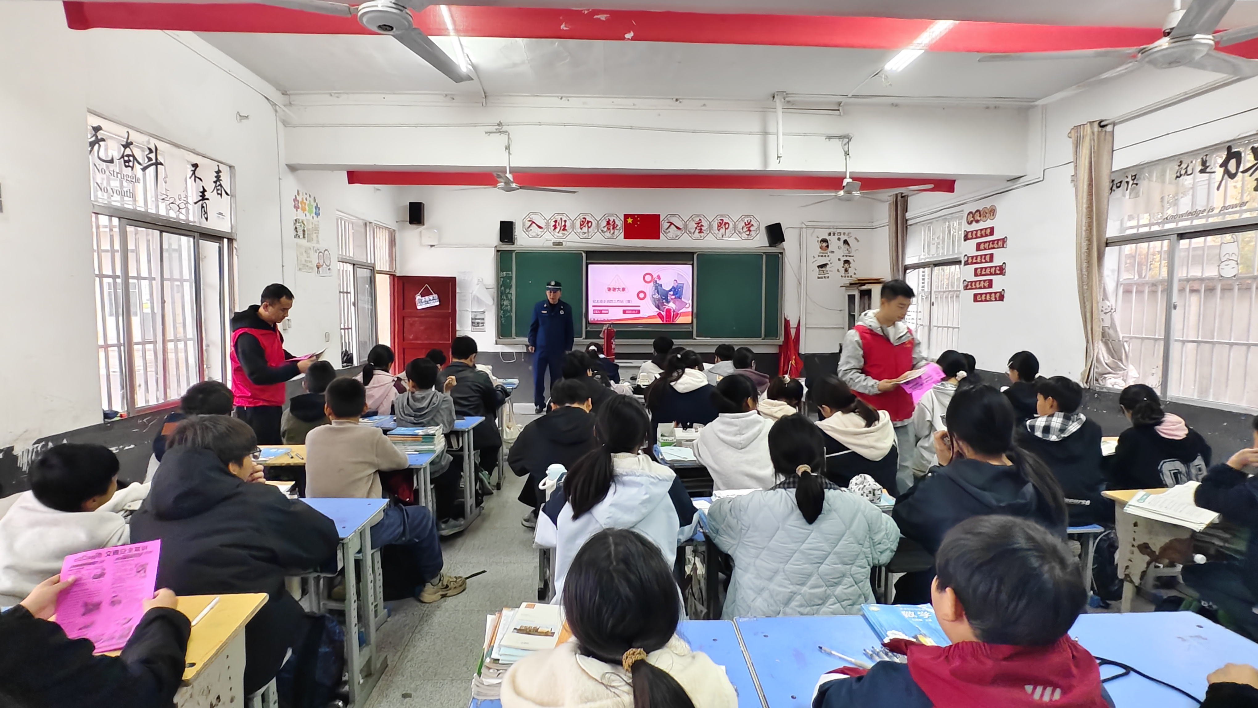11月7日,利辛县纪王场乡消防工作站联合乡退役军人“红耀江淮”志愿服务队,走进纪王场学区纪王场初级中学,为七(2)班的42名同学带去一堂生动而实用的消防安全课。