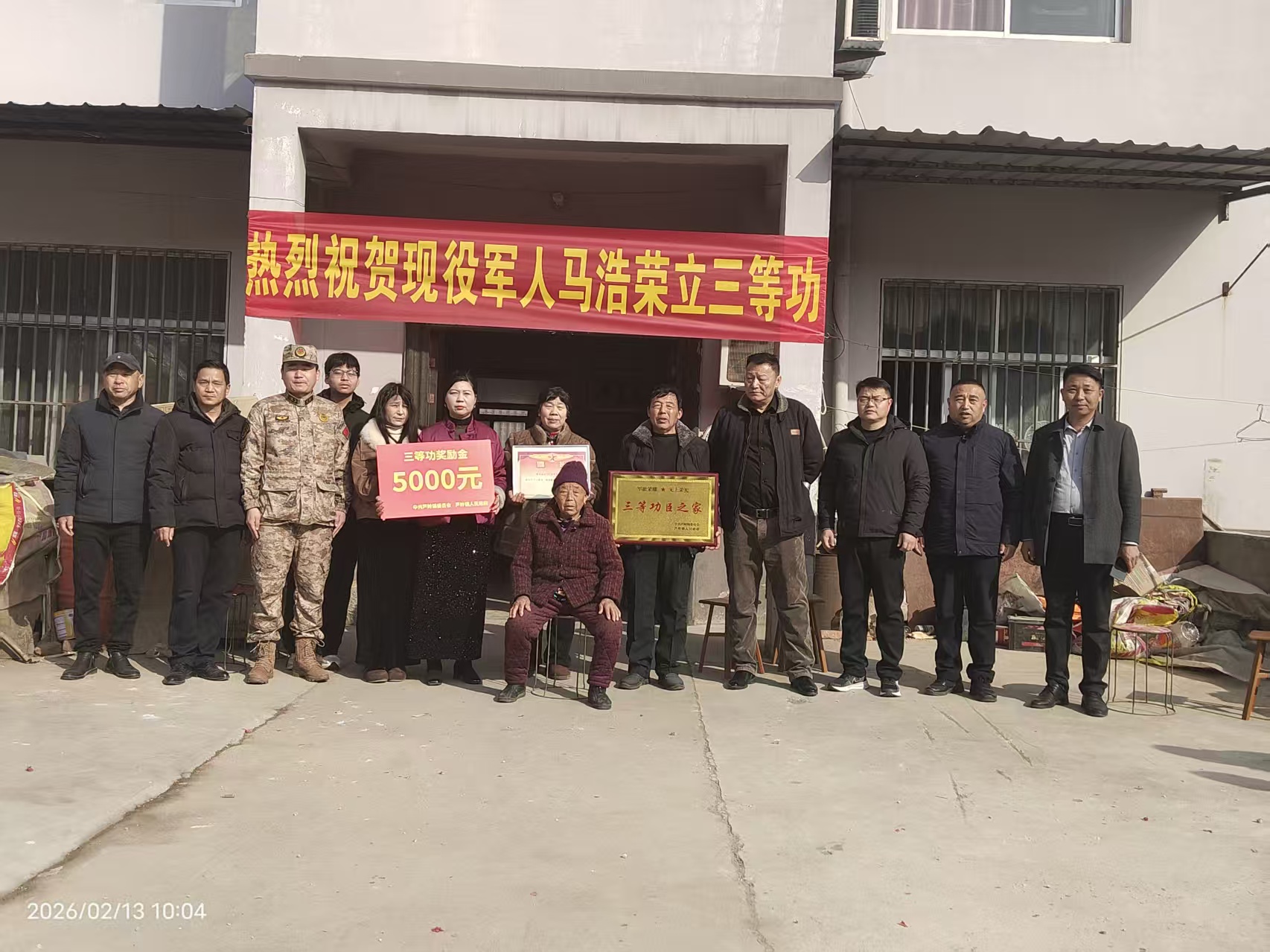 2月13日,宿州市埇桥区芦岭镇退役军人服务站、芦岭镇政府工作人员,一同走进现役军人马浩家中,为他及家人送上三等功喜报、“三等功之家”牌匾和慰问金,把党和政府的关怀与新春的美好祝福...
