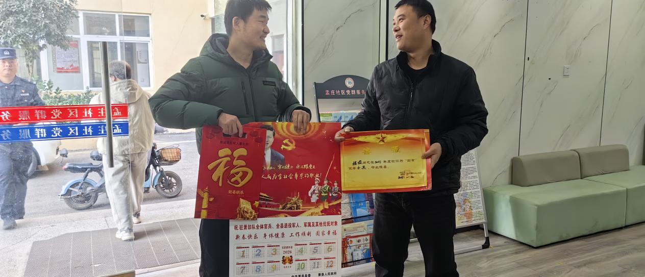 1月15日,萧县锦屏街道退役军人服务站与淮北市杜集区段园镇退役军人服务站携手完成了一场跨越行政区域的暖心接力,共同将军人喜报送至军属手中。