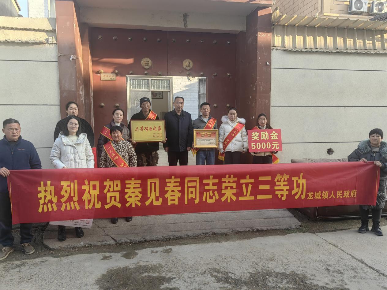 1月16日上午,萧县龙城镇党委书记张跃、副镇长史璐莹、退役军人服务站负责人李博及帽山社区工作人员来到三等功臣秦见春家中,在现场群众的见证下,为秦见春及其家人送上三等功喜报和三等功...