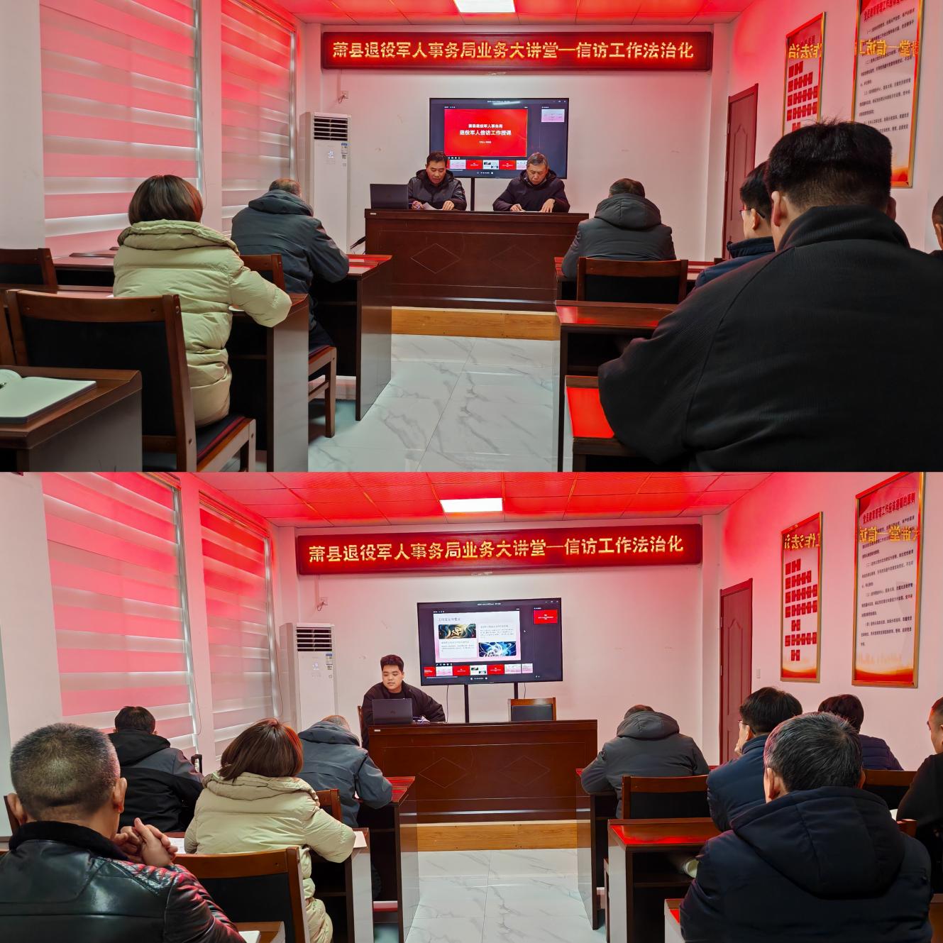 1月19日,萧县退役军人事务局“业务大讲堂”活动正式启动。首期讲座由陶港澳同志主讲,以“信访工作法治化”为核心主题,局班子成员及全体工作人员参加。