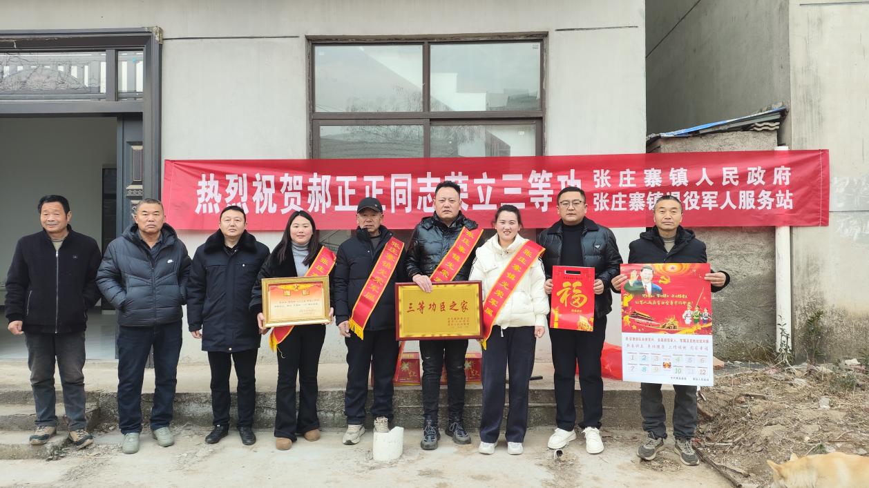 1月14日上午,萧县张庄寨镇武装部联合镇退役军人服务站,专程前往王衍庄村,为两名荣获三等功的现役军人郝正正、卓克家庭送上喜报、慰问金及“三等功”荣誉牌匾。