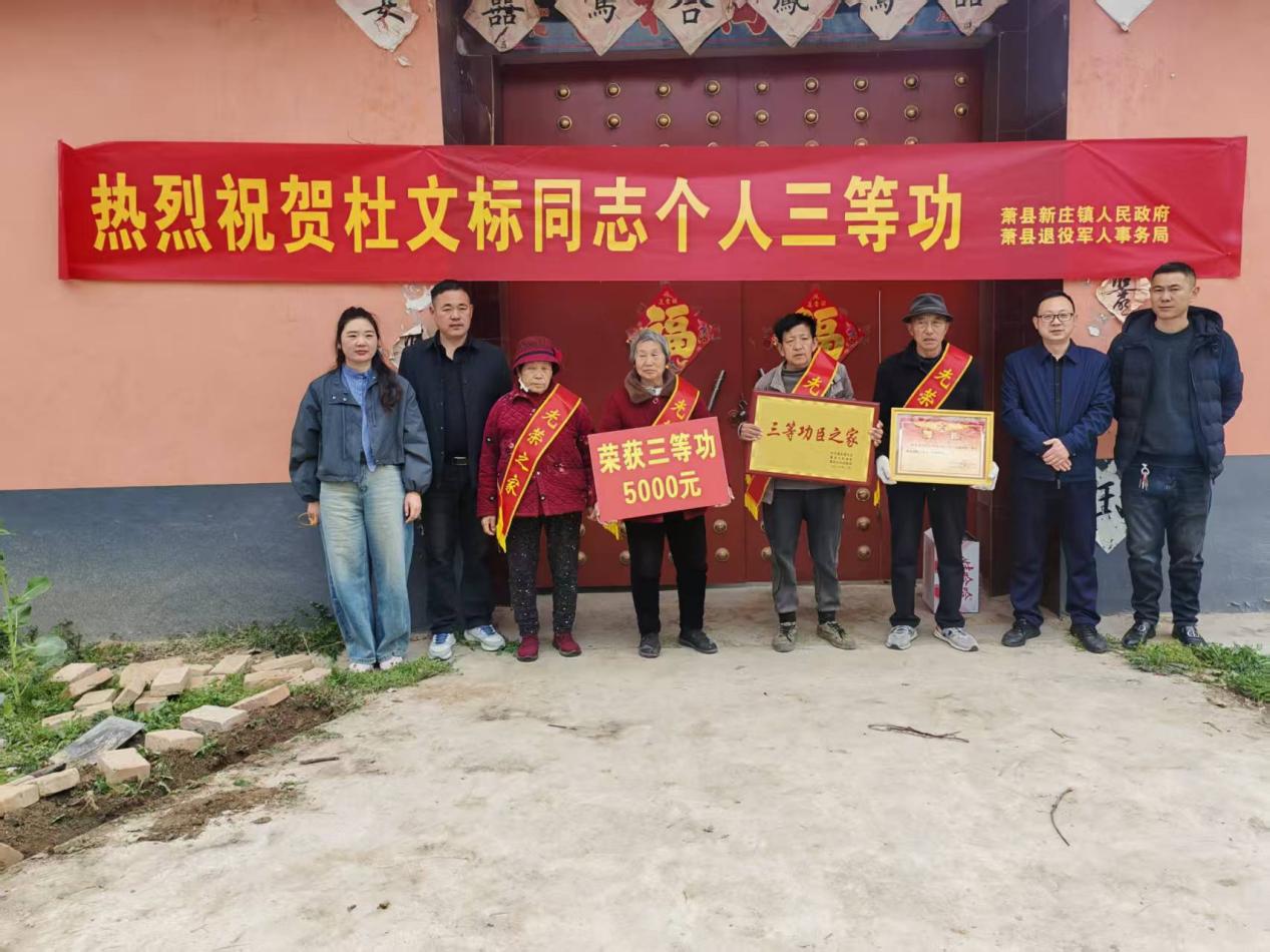 萧县新庄镇为战备训练三等功功臣杜文标家庭送喜报