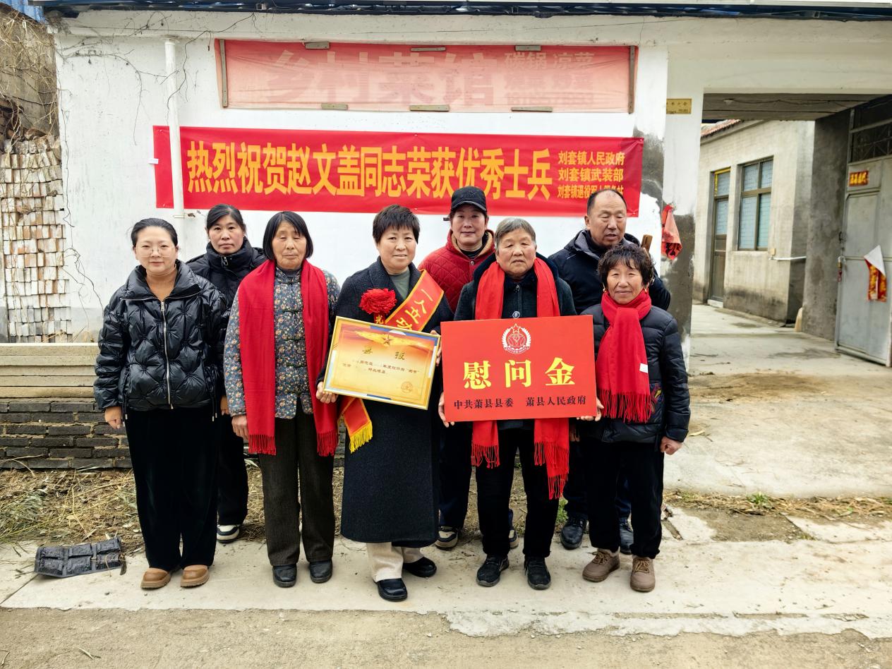 近日,萧县刘套镇退役军人服务站联合相关村干部,组成送喜报工作组,为辖区内荣立“四有”优秀士兵称号的现役军人家庭送去喜报和慰问金,将党和政府的关怀与温暖送到军属心坎上。