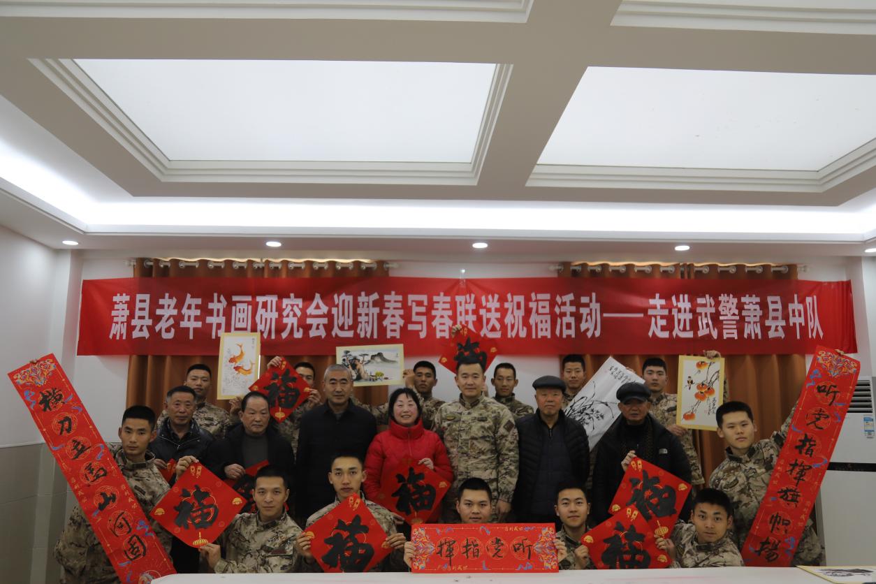 2月12日上午,阳光明媚,春风和煦。萧县老年书画研究会会长孙启斌率研究会胡召雪、刘英、李国华等书画家走进武警萧县中队,开展“写春联送祝福”活动,为官兵们送去新春的美好祝愿,共 ...