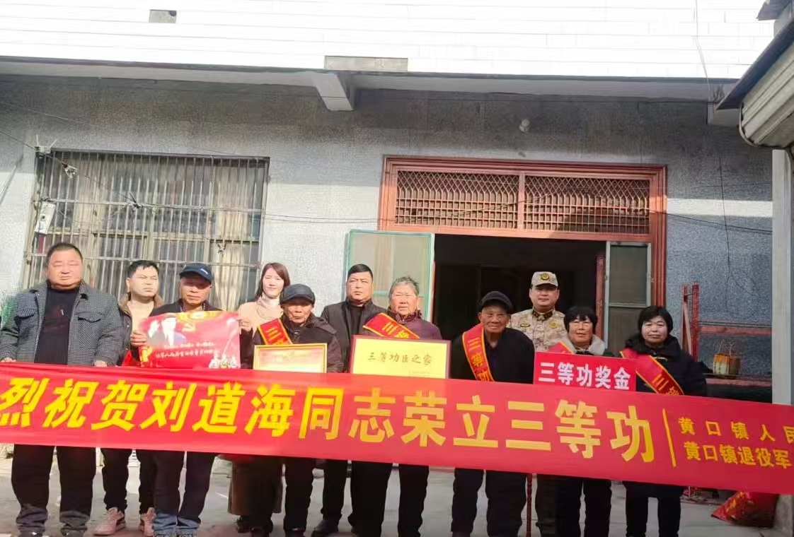 2月12日,萧县黄口镇党委书记张全振带队,和镇人大主任夏林,镇党委副书记、武装部长陈家兴组成慰问组,专程来到唐庄村,为荣立三等功的现役军人刘道海家属送去立功喜报、慰问金和慰问品。