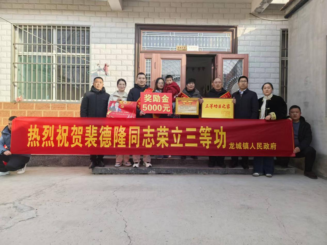 2月12日上午,萧县龙城镇镇长王洋洋、副书记史璐莹、退役军人服务站负责人李博等一行人,带着喜报、三等功臣之家牌匾、年画等前往龙城镇王大庄村、帽山社区,为荣立三等功的现役军人裴 ...