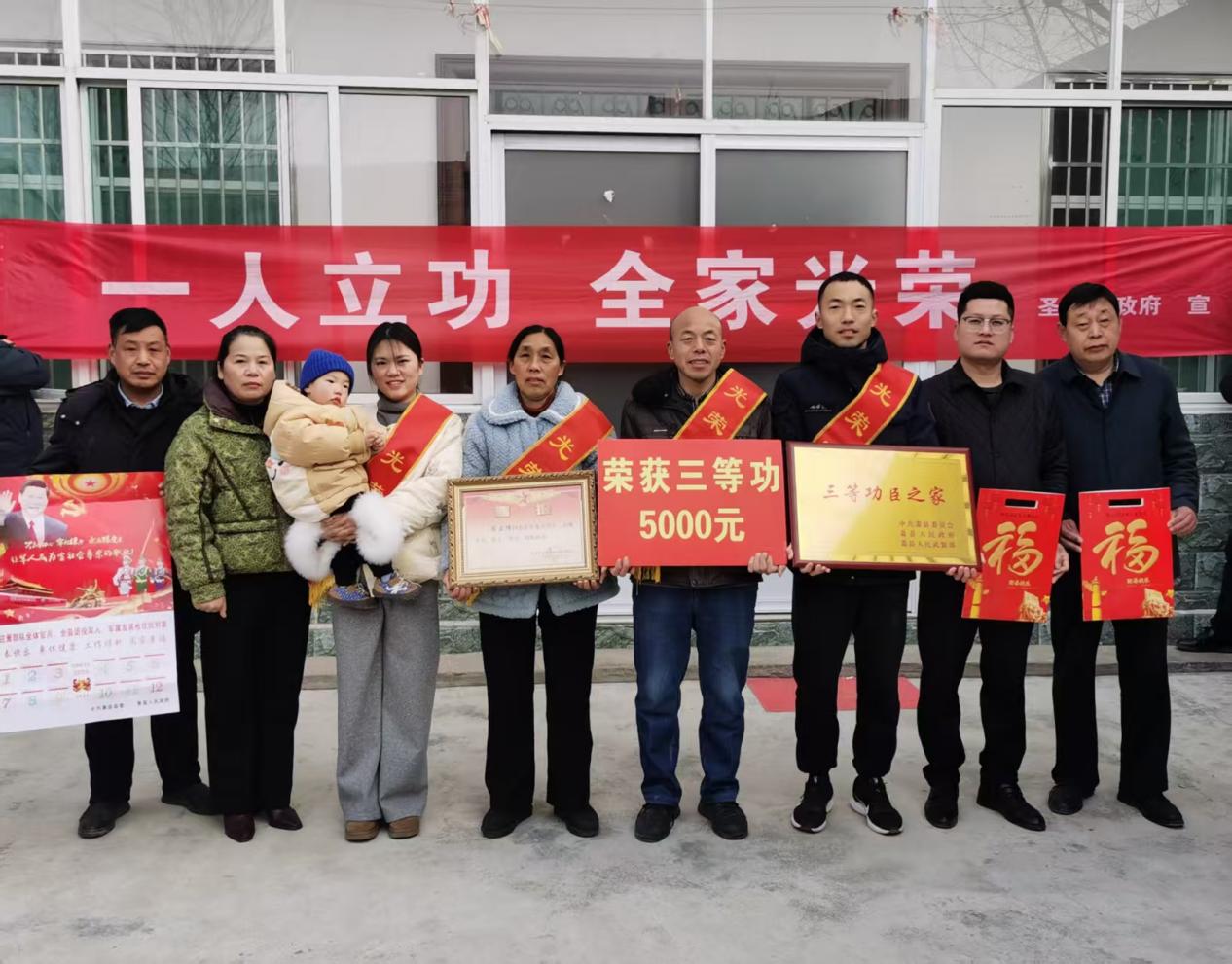 2月10日,萧县圣泉镇便民服务中心主任纵瑞影,镇退役军人服务站站长乔梁及工作人员一行组成送喜报队伍,为荣立三等功的现役军人宋正伟家属送上立功喜报。
