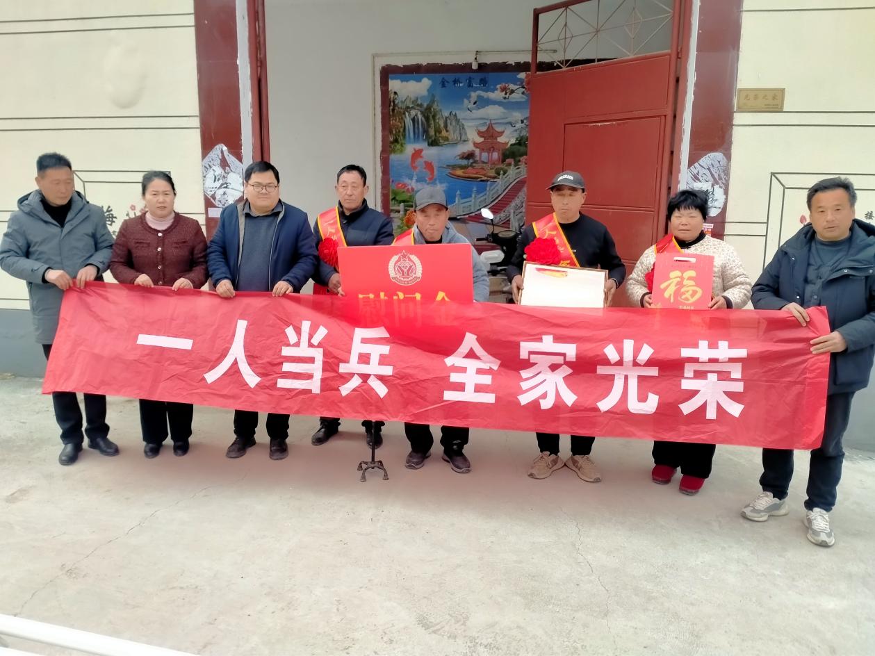一人立功,全家光荣。近日,萧县酒店镇武装部、镇退役军人服务站工作人员到酒店村,为荣获三等功的现役军人李明辉送去喜报和慰问金。