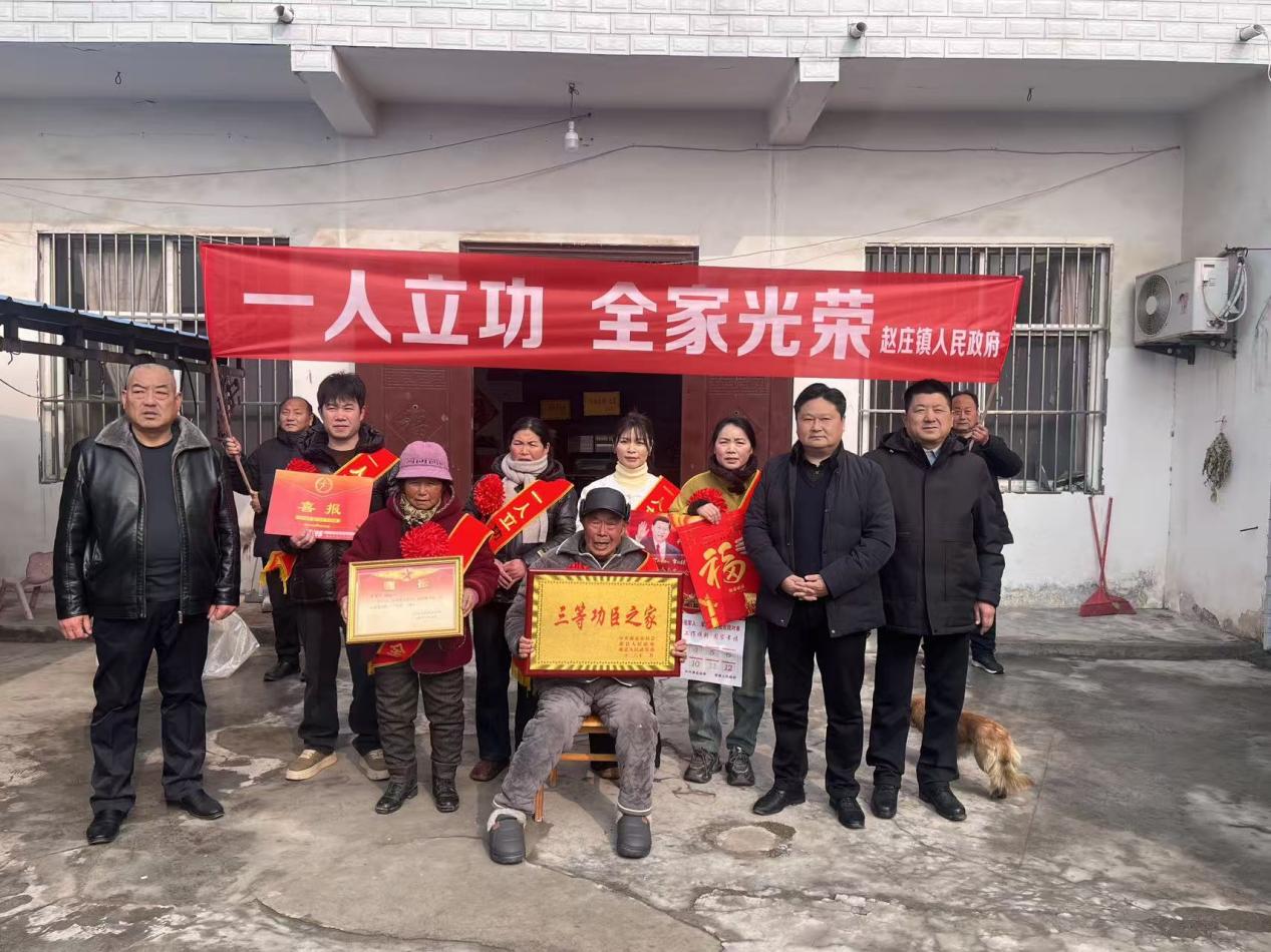 近日,由萧县赵庄镇领导、退役军人服务站组成的送喜报队伍,手捧鲜红喜报与“三等功臣之家”牌匾,走进吴衡家中,将这份承载着荣誉与敬意的喜讯送到其家属手中,让“一人立功,全家光荣” ...