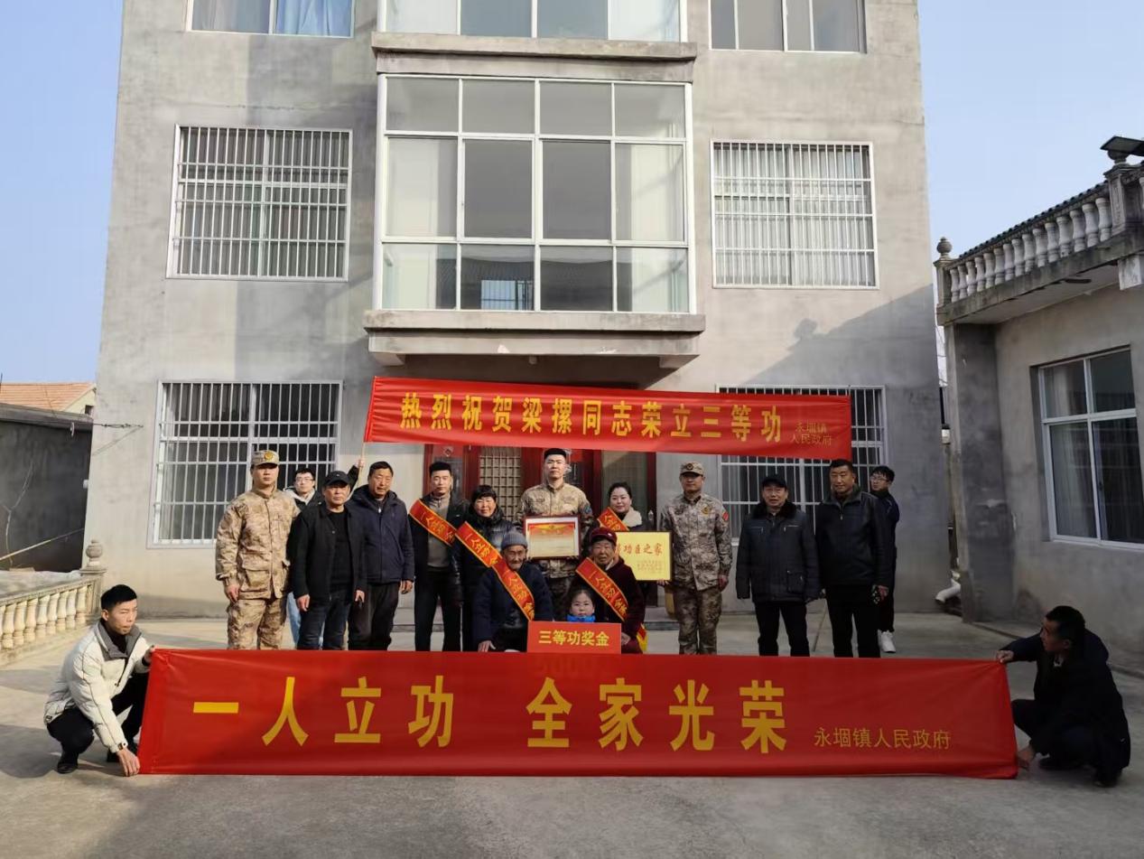 近日,萧县永堌镇武装部与退役军人服务站联合辖区村工作人员,带着三等功喜报、“三等功臣之家”牌匾及奖励金等,专程前往荣立三等功的现役军人梁摞家中,将荣誉与关怀送到军属手中,彰显 ...