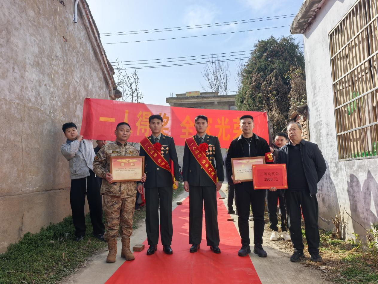 强军练兵立军功,喜报尊崇送家中。2月6日,临泉县委、县政府,县人武部、县退役军人事务局、单桥镇党委组成慰问组,一同前往单桥镇大文庄村现役军人文庭玉家中,欢送二等功喜报和奖励金。