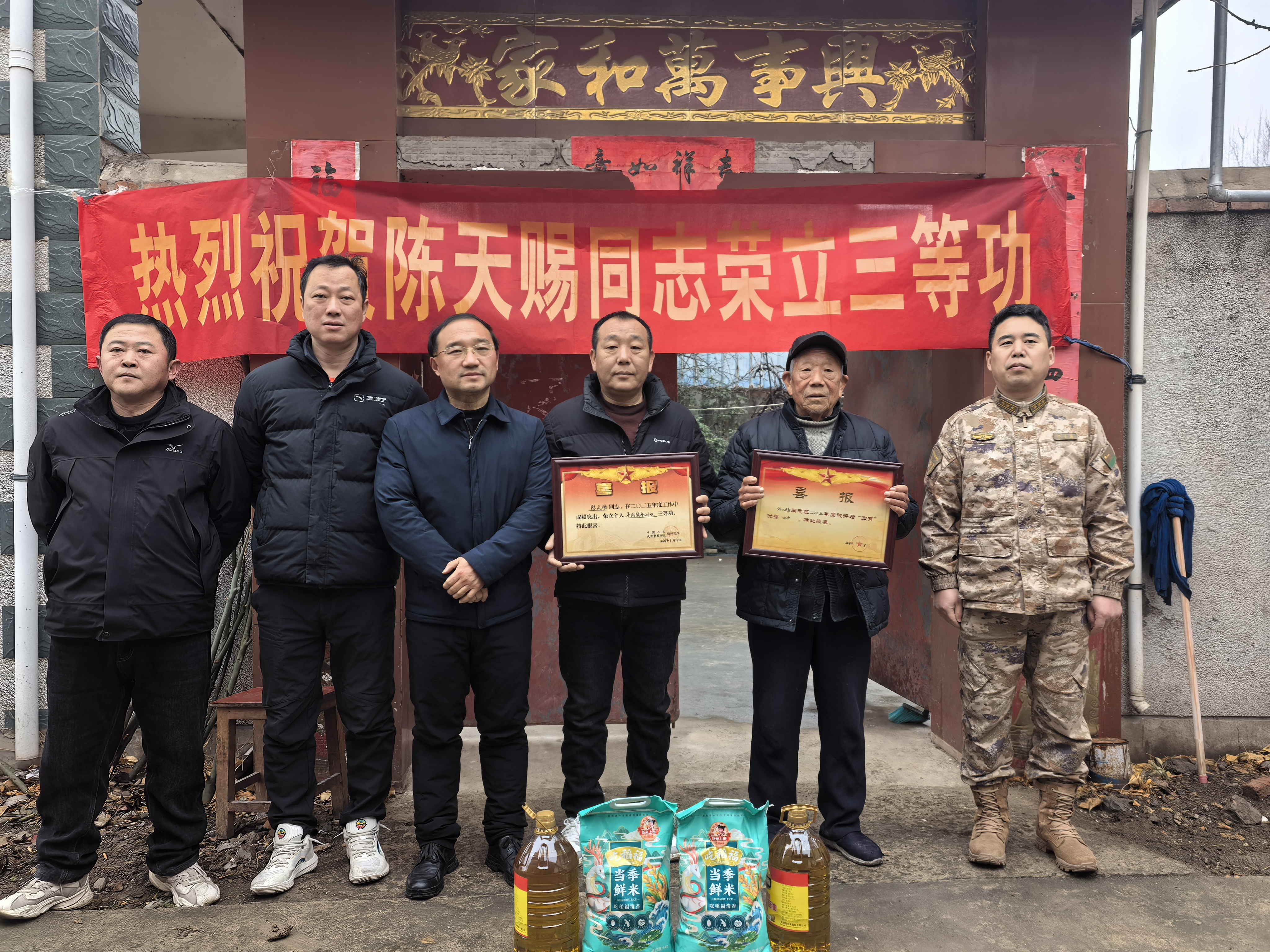 军营立功耀家门,喜报千里传美名。1月27日,淮南市大通区退役军人事务局联合区人武部、洛河镇共同为荣立“三等功”现役军人及其家属送上喜报、慰问金,并致以亲切的问候。