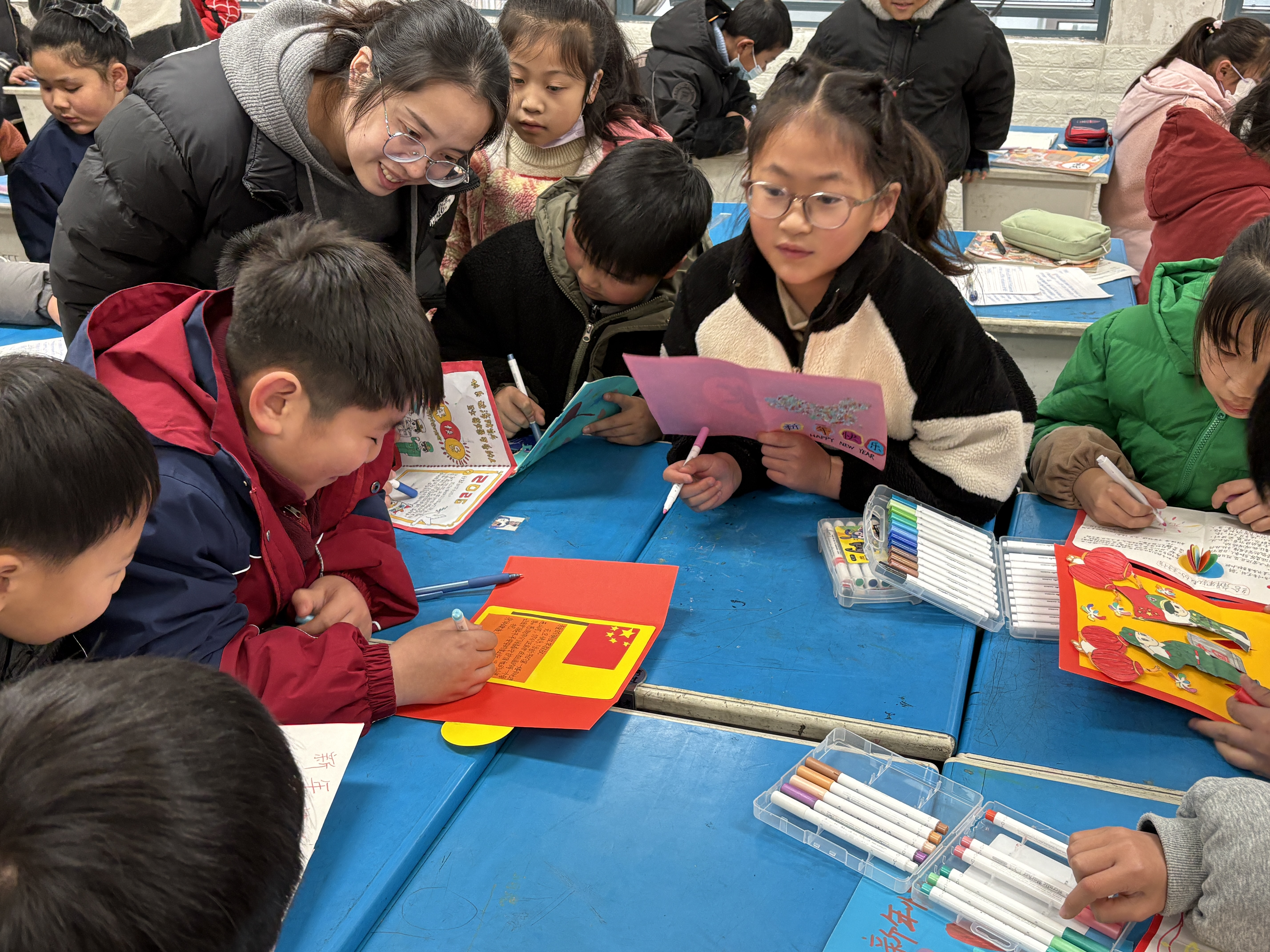 八公山区第一小学四年级学生在老师指导下制作贺卡