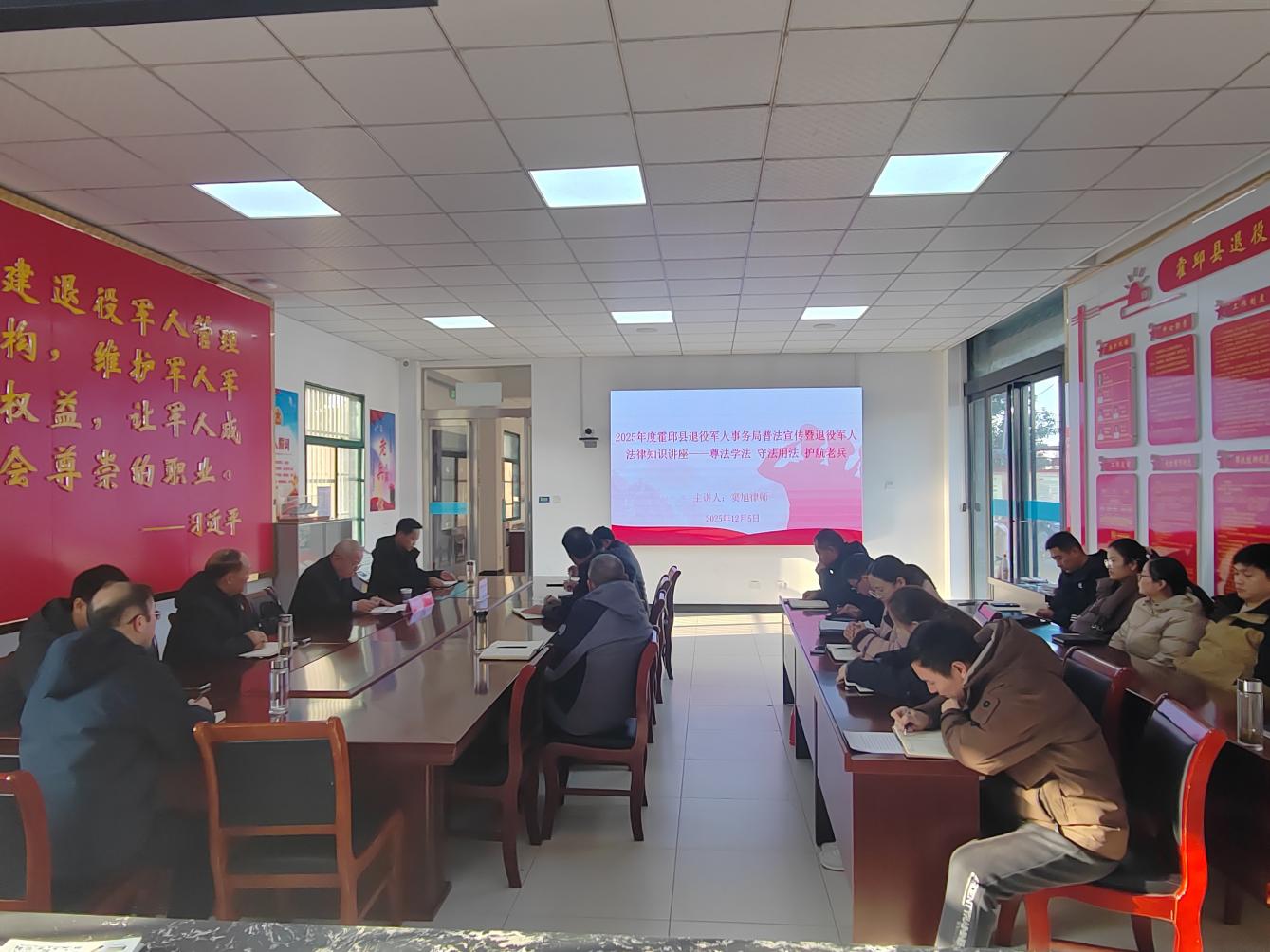 为深入贯彻落实习近平法治思想,切实提升退役军人事务系统干部职工的法律素养,12月5日,霍邱县退役军人事务局精心组织开展法律知识讲座暨普法宣传活动,以“尊法学法、守法用法、护航 ...