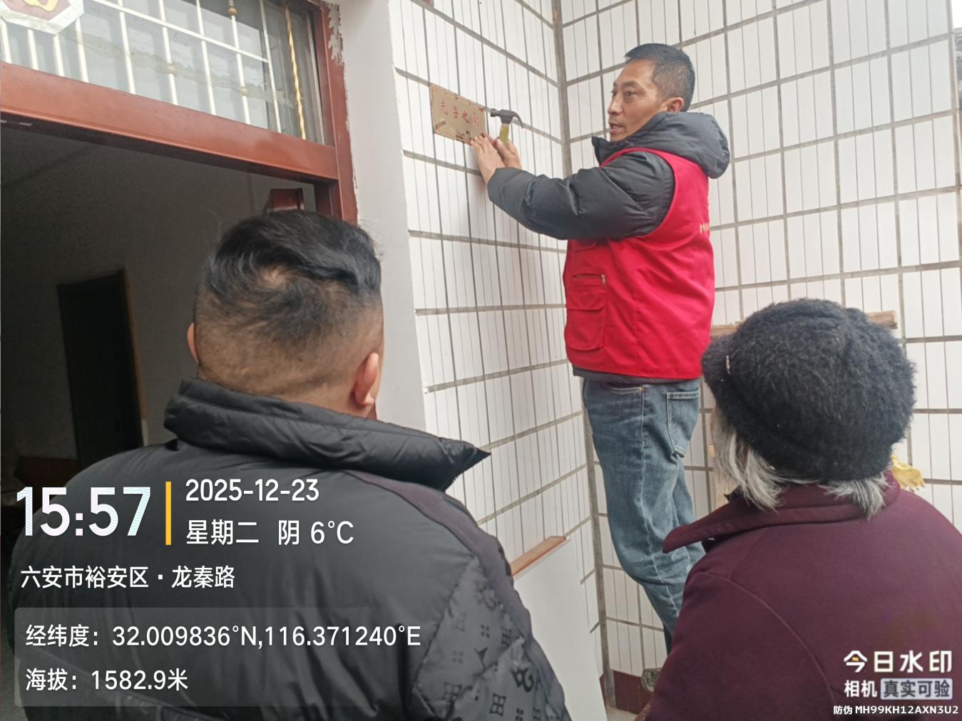 12月23日,霍邱县退役军人“红耀江淮”志愿服务队开展“光荣牌入户”行动,身着统一队服的志愿者们穿梭于花园镇街道,将一块块镌刻“光荣之家”的金色牌匾,郑重送到入伍新兵家庭手中 ...