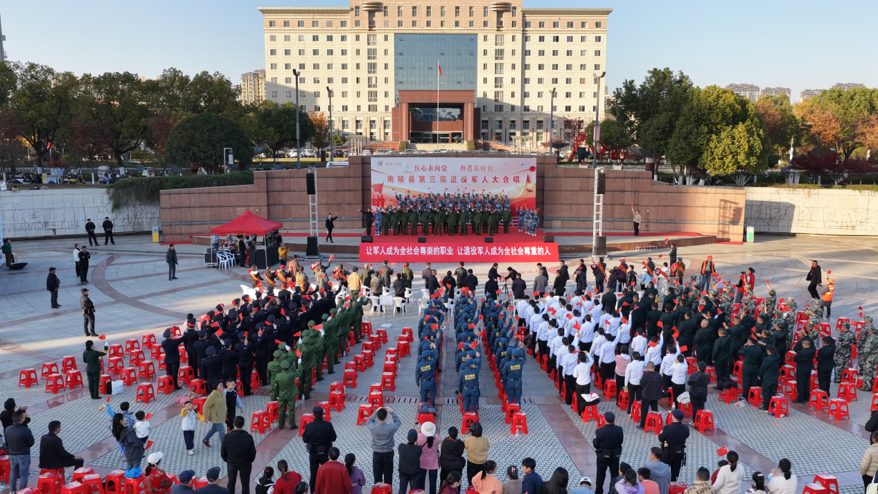 11月29日,“兵心永向党 奋进新时代”南陵县第三届退役军人大合唱活动在南陵广场举行。