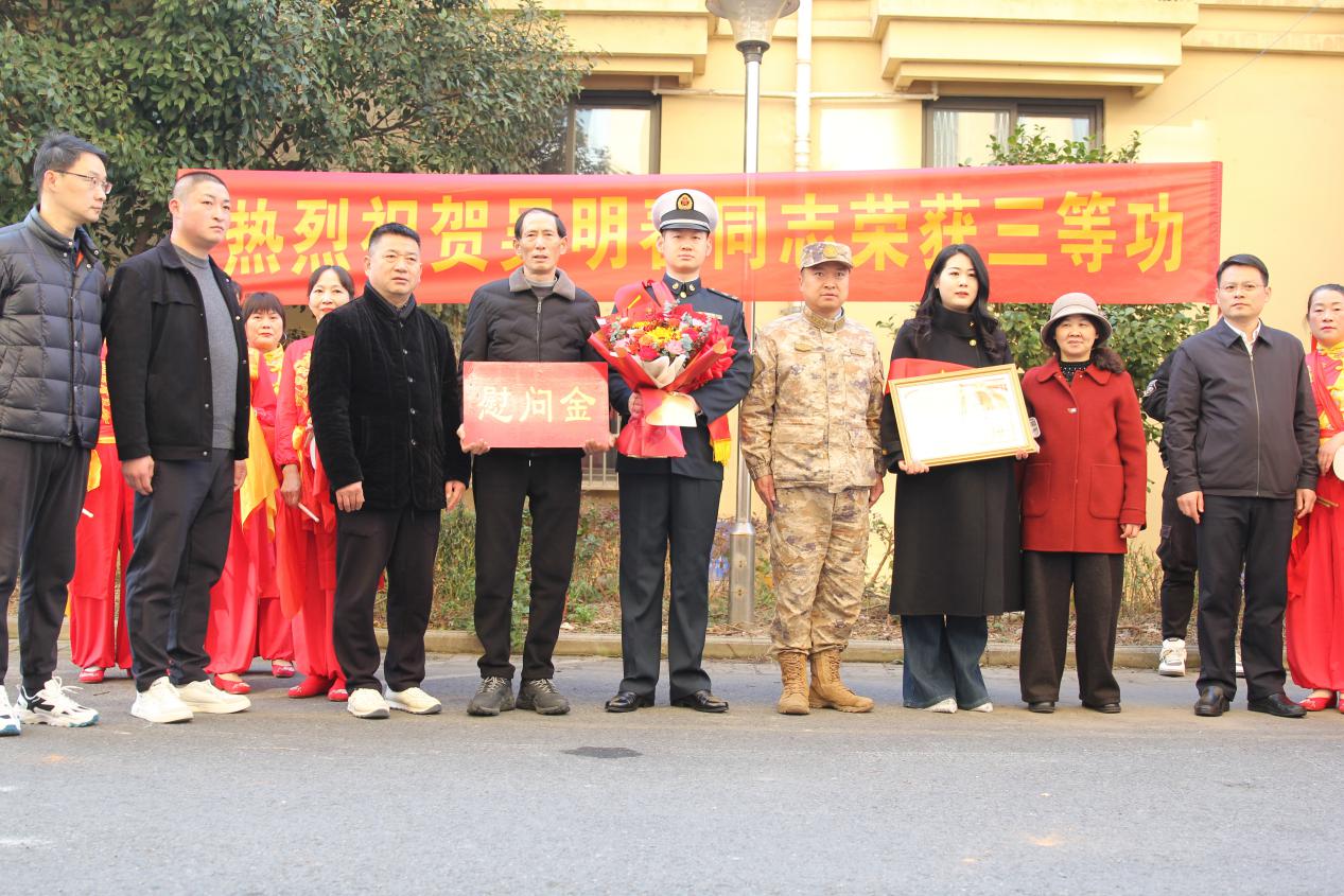 3月11日上午,芜湖市繁昌区退役军人事务局联系繁阳镇人武部和退役军人服务站,敲锣打鼓前往该镇新化社区,为现役军人方然的家人送去了三等功的喜报。