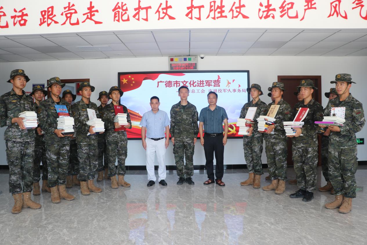 8月11日上午,广德市退役军人事务局、市总工会以及新华书店组织前往驻广武警某中队开展“送文化进军营·固军民鱼水情”拥军活动。