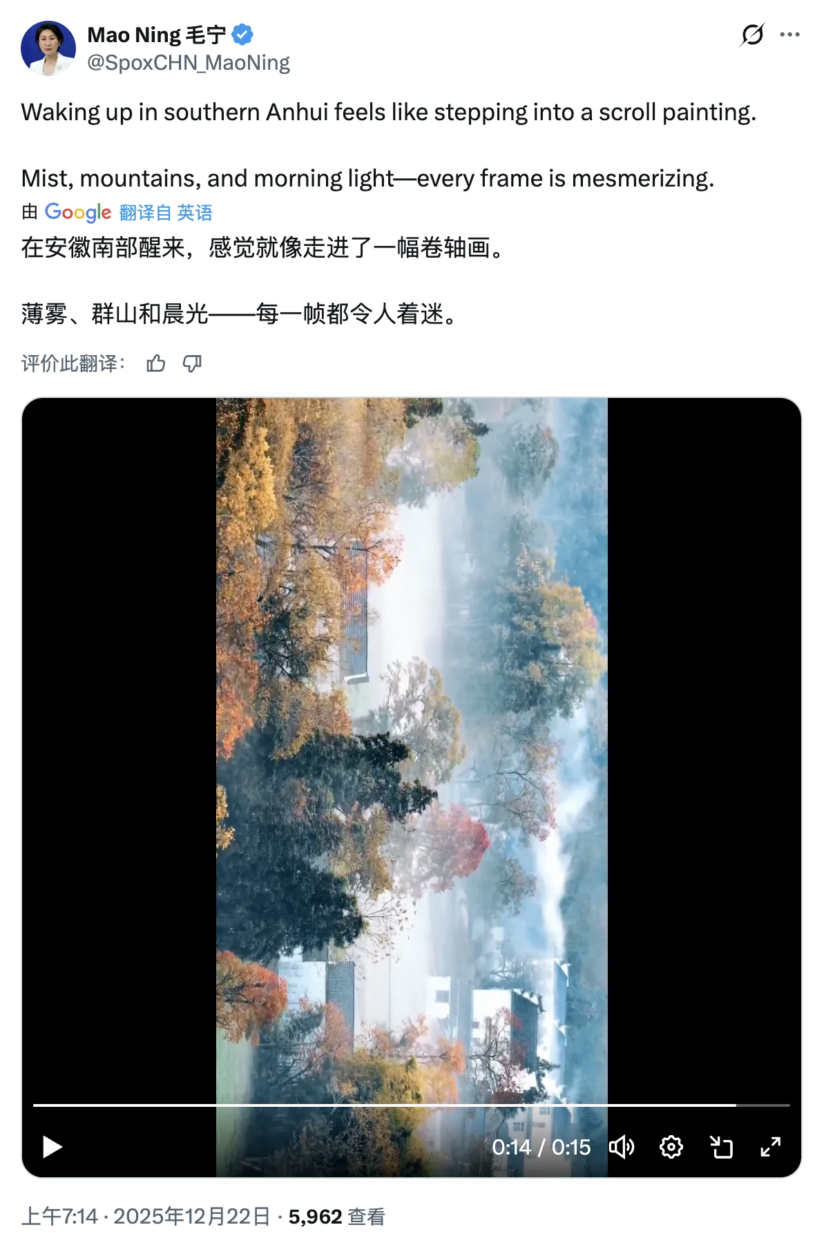 安徽美景惊艳海外!黄山老兵航拍作品获外交部发言人推介