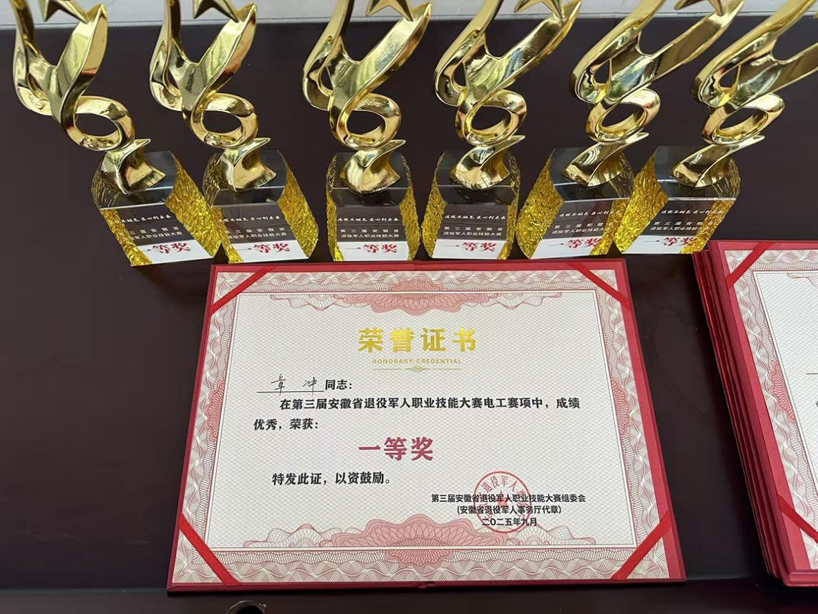 日前,在第三届安徽省退役军人职业技能大赛电工赛中,经过激烈角逐,休宁县万安镇退役军人章冲以过硬的技术斩获一等奖。