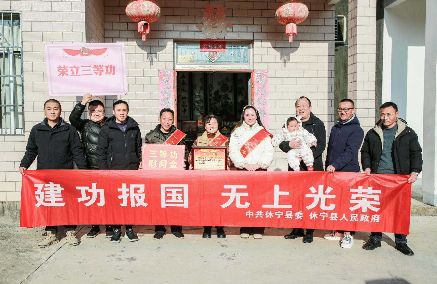 12月26日,休宁县溪口镇石田村的朱艳华家和渭桥乡资村村的金明家就像过年一样热闹。该县人武部、县退役军人事务局和乡镇等军地负责人,为荣立三等功的现役军人朱艳华和金明两个家庭送去喜 ...